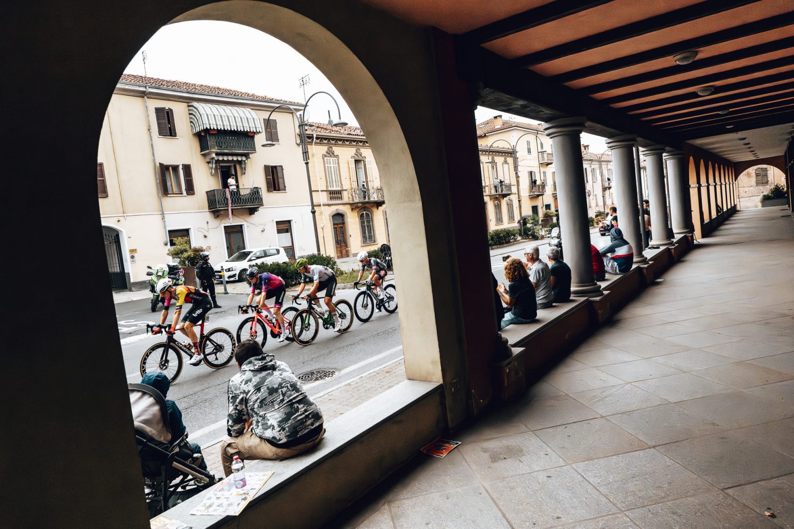 Unlike smaller events, where you have to do a bit of everything, the roles of official photographers in a Grand Tour are very clearly defined and organized. Some are responsible for sponsor visibility, others focus on showing key locations along the route, and others concentrate on the sporting aspect because, obviously, if there’s an attack, you have to be there.