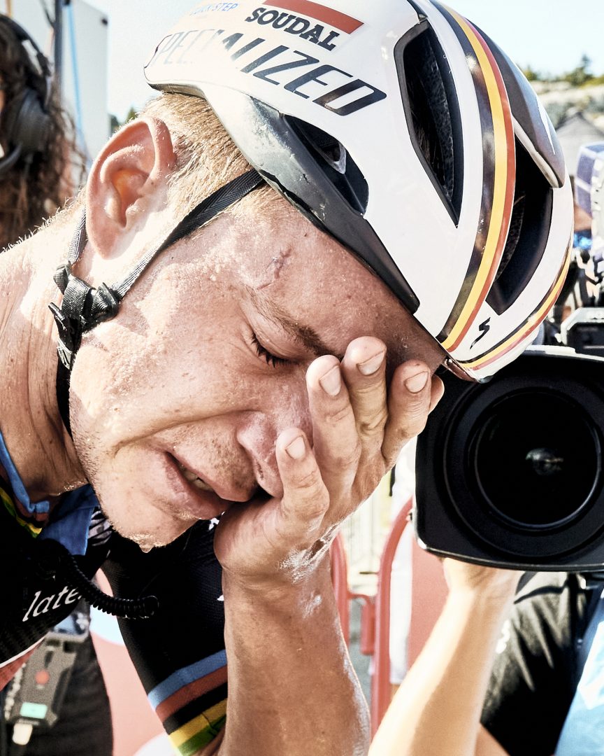 As Naike speaks, we visualize the post-finish line, one in particular. Stage 13 of La Vuelta in 2023. Remco redeems himself solo in Larra-Belagua after his collapse the previous day on the Tourmalet. “That day, it was my turn to capture the moment. My role was to run. We call it reactions“. The punch on the table he had just thrown prevented him from holding back the tears. ”I was taking the photo, and you have to try to fight with everyone to get the shot and not disturb him, because he’s crying. I’m very empathetic and I started crying too. With all the noise, for me there was silence. It’s something that happens to me a lot in cycling. When there’s a tense moment like that, I don’t hear anything, just him sobbing. Other photographers have told me they share that feeling, so it must be quite normal and I guess that’s a good thing”. This shows what this sport conveys. And… is that emotional or epic?