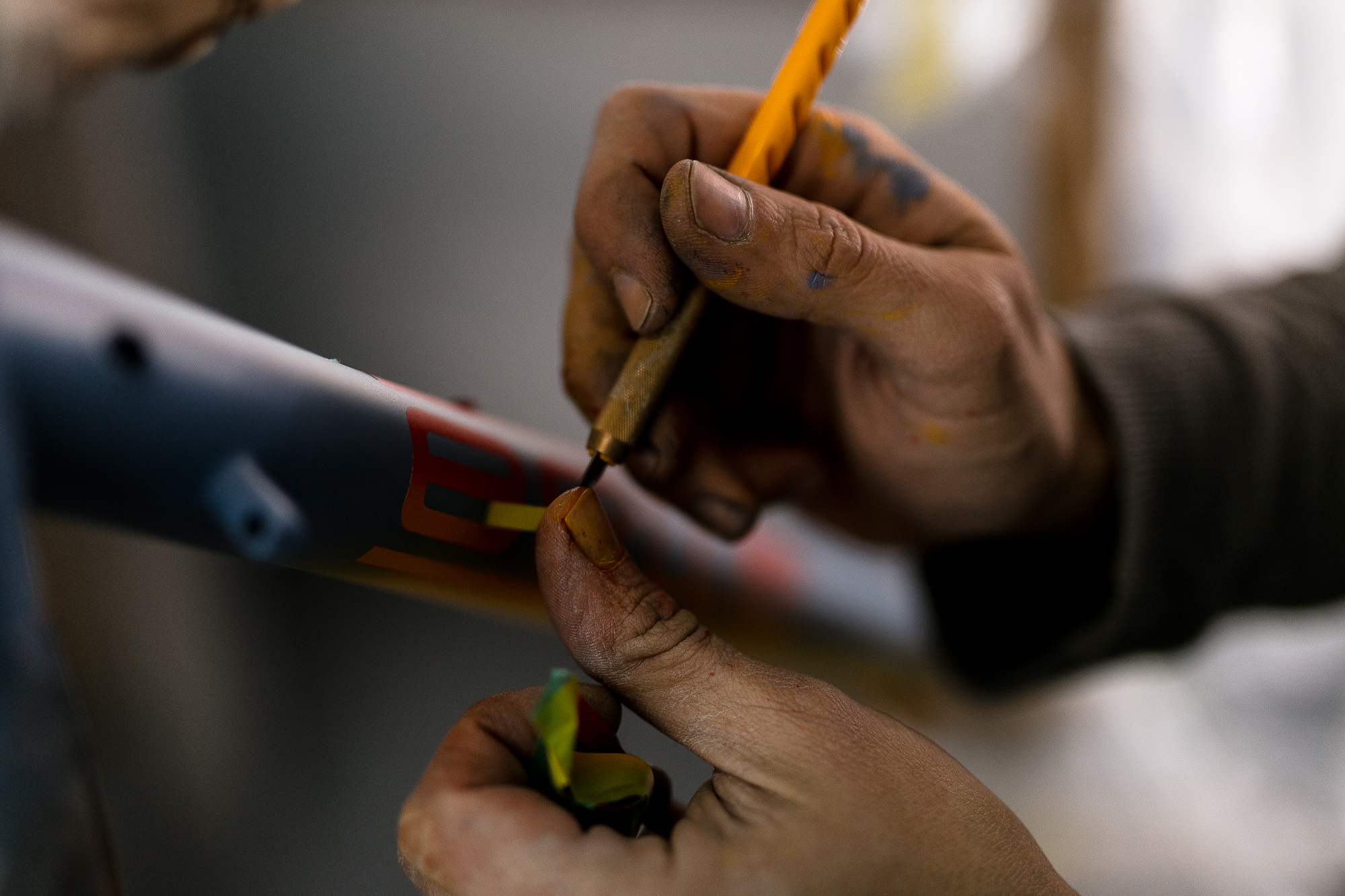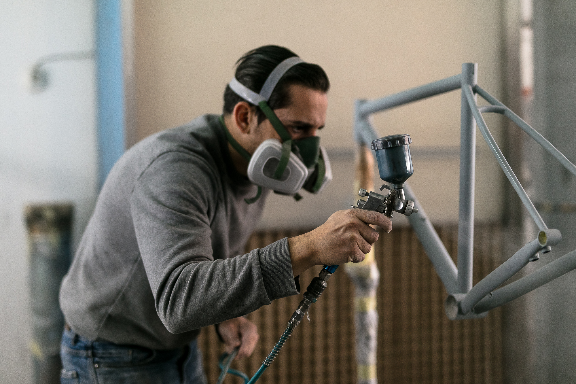 Sometimes it’s not valued, and it’s logical, people don’t know all the work behind it. Sometimes I think… why did I get into this? For example, today I made a frame where the client asked for many things in particular: logos in a certain way, silver leaf… they ask for very complex things and I never know what to say no to, I know it’s possible that it could go wrong but I still do it. Sometimes it’s very difficult to explain how complex it is technically, in steel bikes it’s especially hard to do. For example, if you varnish many times you lose details, it’s a technical challenge that doesn’t happen in carbon bikes or for example a motorbike tank.