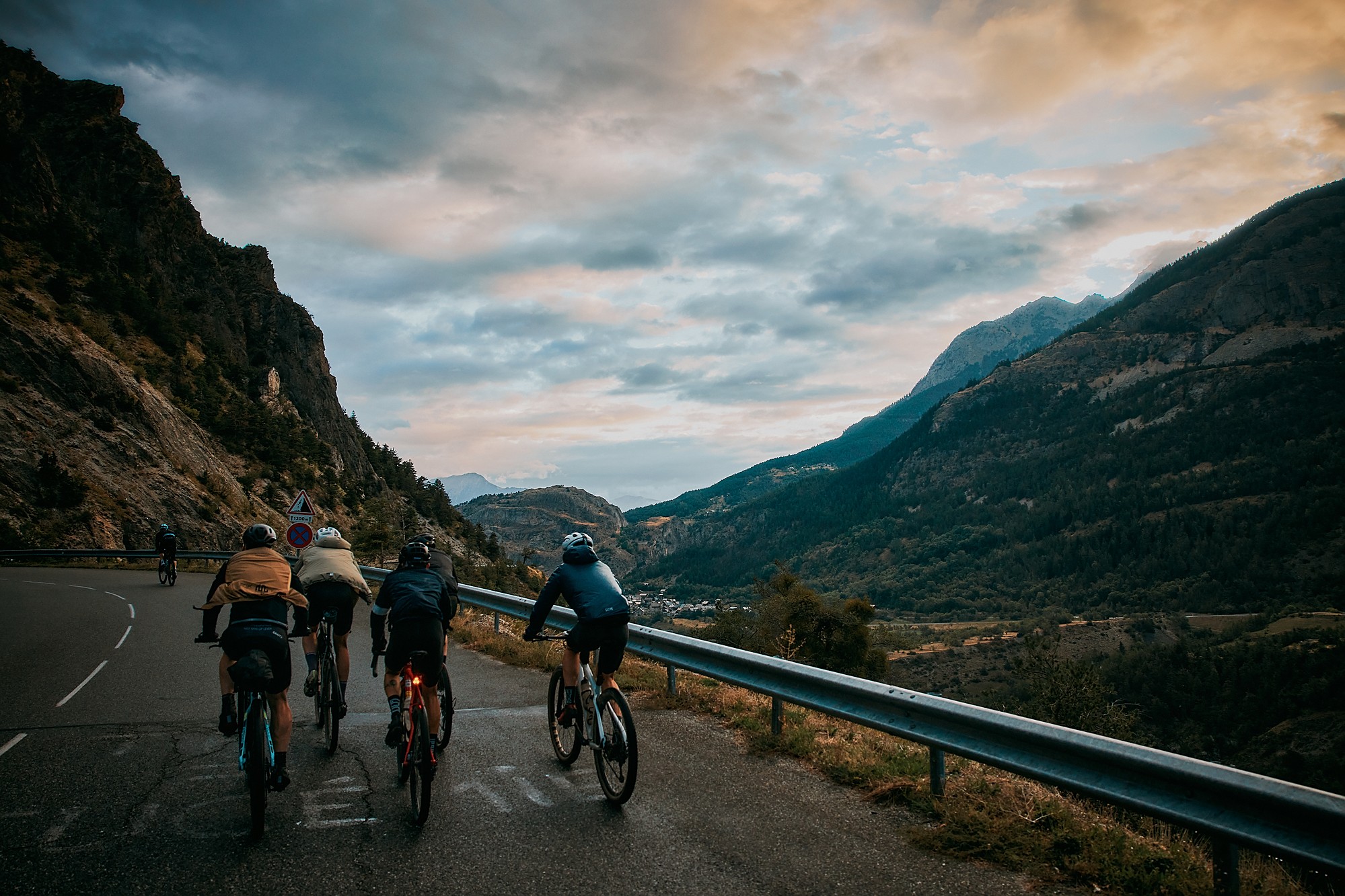 The early bird catches the worm, so we had no time to spare as 120 km with 3,500 m of gravel awaited us. We all gathered for breakfast at 6 a.m. before descending from the chalet into the valley and heading to Briançon. Despite seeing the sun rays on the highest peaks it was humid and chilly, but a punchy first gravel climb warmed us up before arriving at the Boulangerie ALEF to enjoy a croissant and a hot coffee.