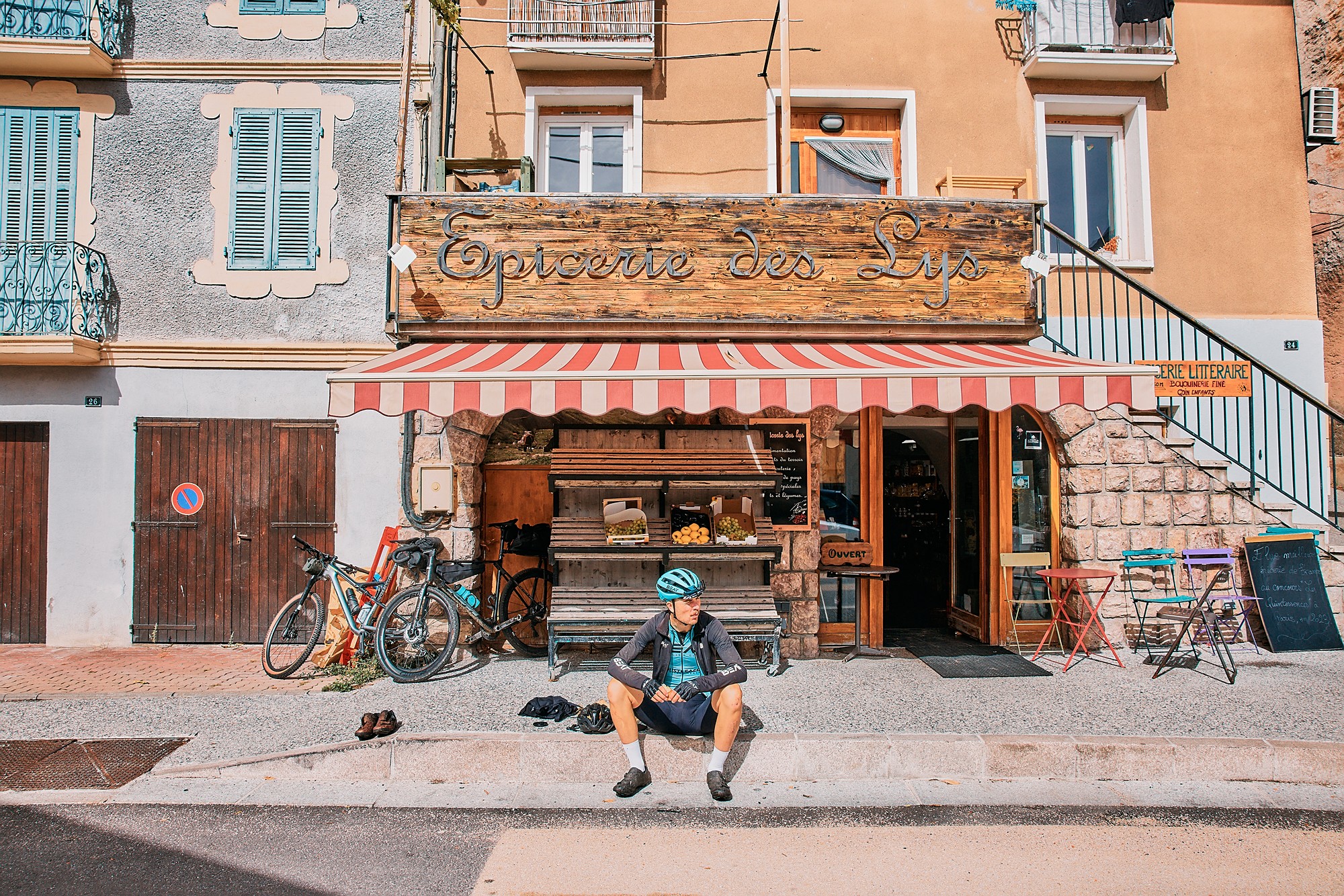 Halfway through the day, we headed upstream into the Vallée de l’Ubaye where we would spend the night scattered in a Gite in Meolans or hotel rooms in Barcelonnette. There was only one of us who decided to go all in and sleep outdoors. Luckily Martijn found an open outdoor sauna in which he placed his bivy bag. Everybody spent the night thinking about the others and the next day, as the night was very rainy and the weather was not promising.