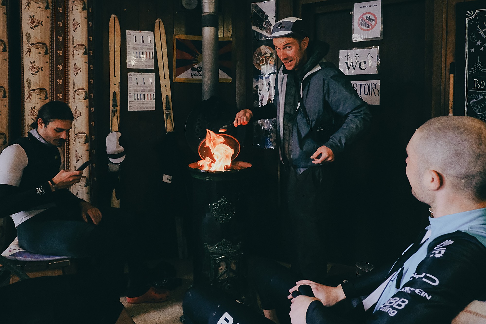 That was probably the highlight of the day, but what was even better was the welcoming of Simon and Cyril to the Refuge des Drayères. A hot soup and a buffet with amazing food by Anne from the refuge, as well as, a hot stove and blankets to warm us up awaited us. We could not be more grateful for what was happening after enduring such a cold and wet ride. However, we could not stay too long as we still had a long descent and final climb ahead of us.