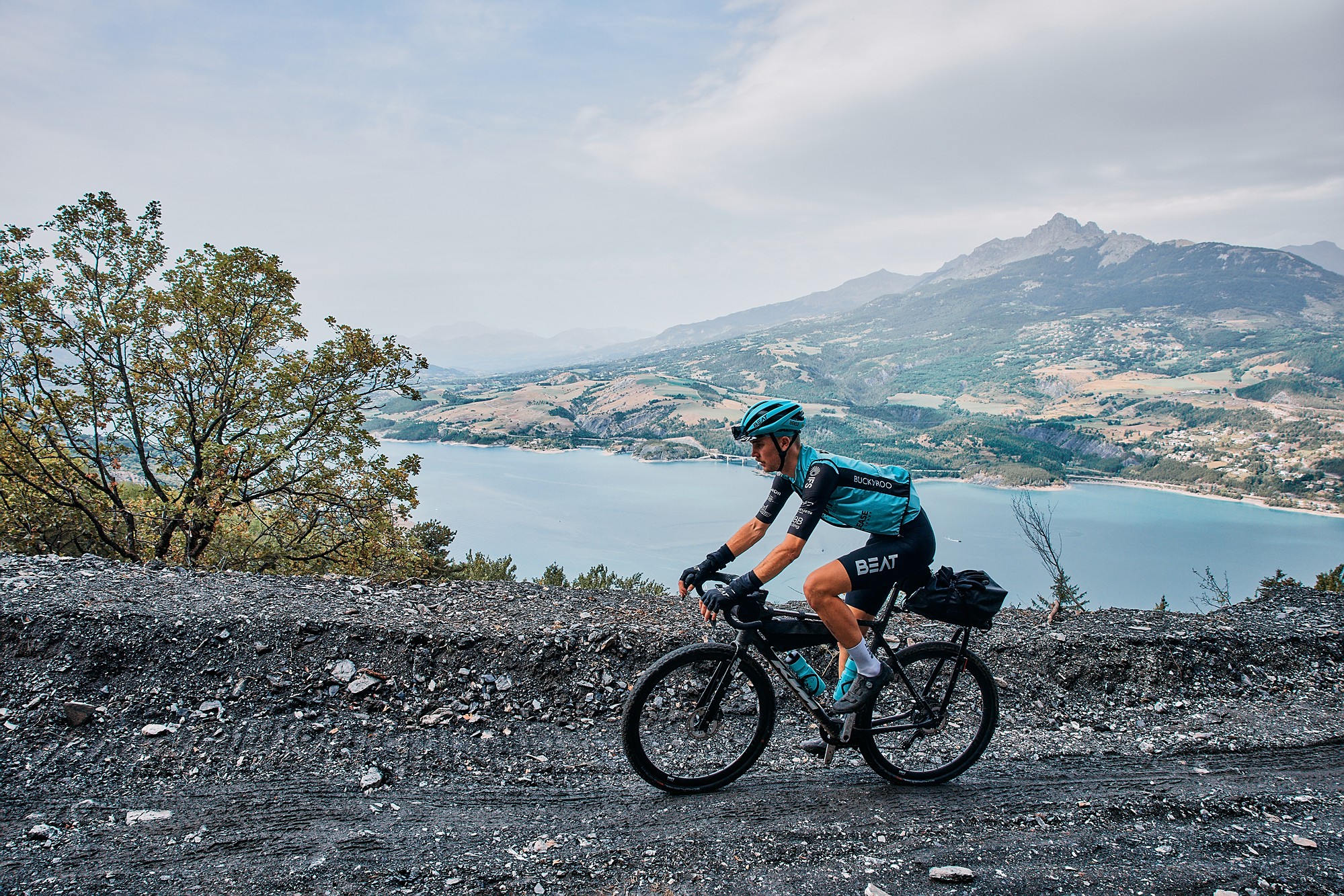 Of course, the best is always served last, a 250 km route with 6,500 m of elevation gain designed to be finished in two days with an overnighter in the middle. With some snow from the night on the highest peaks, we would be heading south for the first time and this time directly going up. In the menu, there was a succession of relatively short climbs along the Serre Ponçon that took us to Embrun and the lake next to it with already 2,000 m of accumulated elevation gain.
