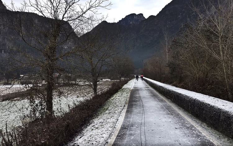 The last 80 km we added 5 lakes in the final stage of our 500 MenOfLakes, cycling the Lake Valley to the village of Terlago. If in the previous days, the wind was our biggest enemy, on the last day was the cold, with a – 6º registered in the morning to give us the “good days”.