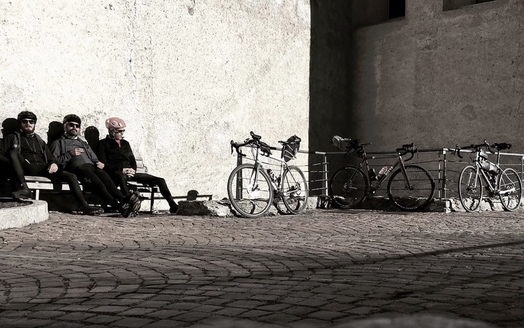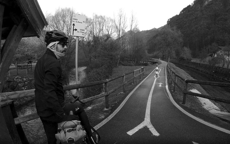 The third day we reach the Lake of Caldaro from Trento by the Weinstrasse (wine Street) in the middle of the Überetsch among vineyards and fruit fields, we had planned a flat route, but between up and down and wrong ways, we accumulate 1000m of gradient. There was no wind that made us in a good mood and we decided to stop to drink a good glass of lagrein in the small village of San Michele. We arrived at Bolzano and we turned back, unaware that was awaiting us again a fucking wind. 60 km away, battling the wind, was a real agony.