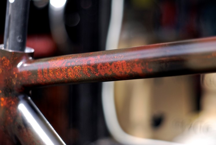 I started around 2011 with minor customizations, parts and smaller paint jobs like the custom wheelset and painted hubs on the Faggin. My second Rat bike, the Kagero caught so much attention and I started to receive requests for paint jobs from all over the globe, ranging from full on rust look to bespoke finishes.