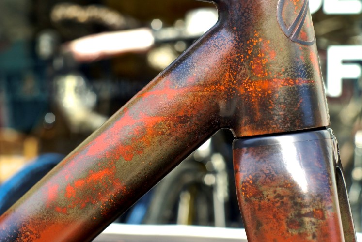 It’s all done in Paint, no degradation of the material. I can rust your alloy frame as well as your carbon fiber steed, your crash helmet or plastic gas tank.