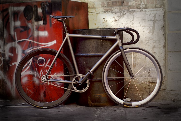 - Leader Kagero (2011): Custom parts all over the shop. Logo modification/removal on seatpost and stem, hand polished Cinelli track drops, powder coated matt black Omnium cranks, custom rear wheel.