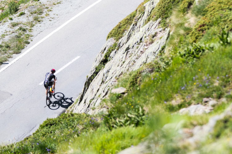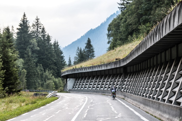 While crossing the top of Champex-Lac I could see what I was waiting for so long: The view towards the Grand St Bernard. The 46km long climb with an elevation gain of over 2000m this is a beast! It drags along for a long time to get tired before the real steep part of the last 5km. Before facing this physical and mental climb, I stopped at a little café, bought a croissant and a coke. With that 5min break I felt mentally ready for the Great St. Bernard. On and off I was riding in groups. Everyone had their own pace. Although there was sometimes an effort to stick together, on a 46km it is nearly impossible to keep together. As anticipated the last 5km after the tunnel were tough. But by sticking to a sustainable pace, I arrived at the top feeling good. It was not so much the physical fatigue I was worried about. It was my mental “muscle” which I had to carefully engage. Staying motivated and focused while keeping the stamina is an absolute necessity to keep going, finishing this event and not wanting to sell the bike afterwards.