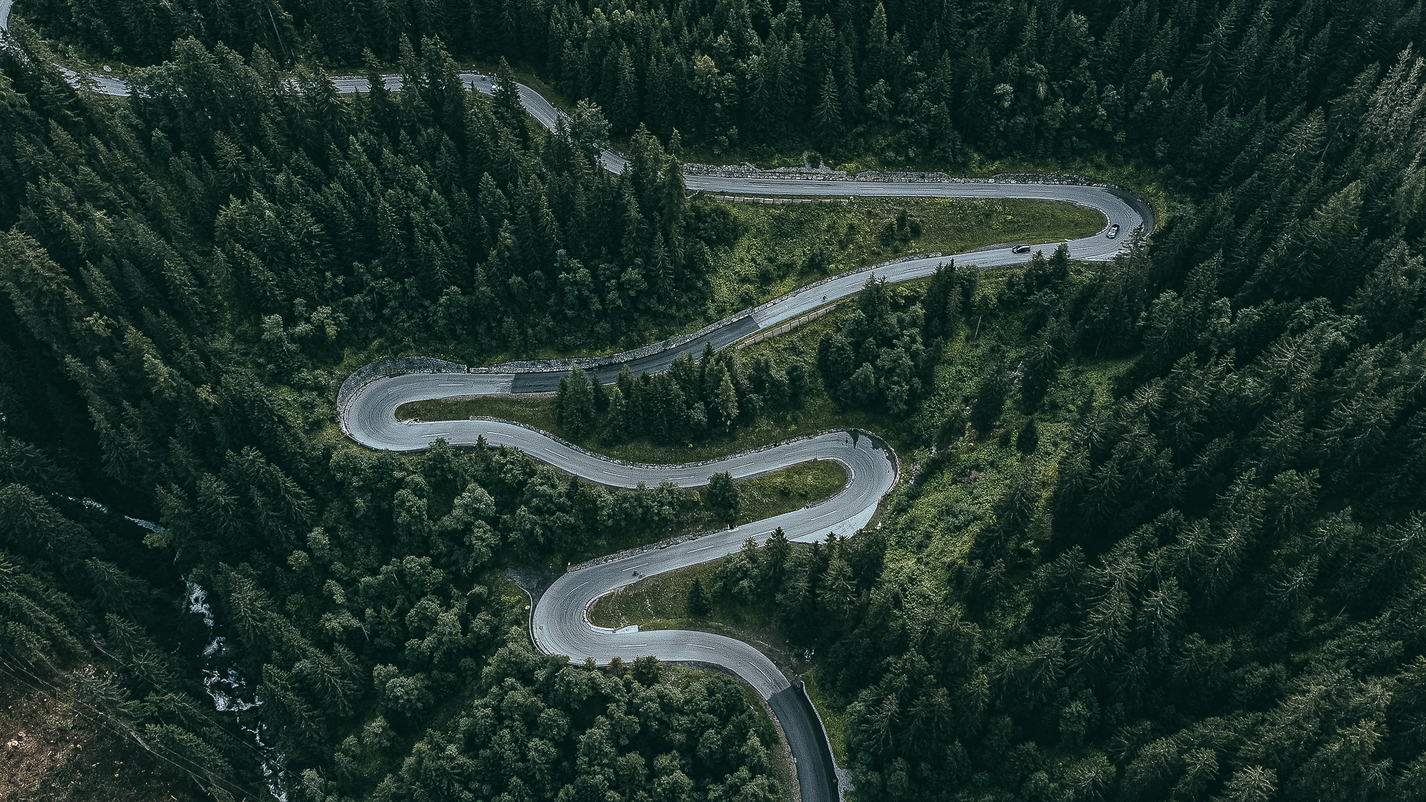 We went down the same road, but we took a detour halfway through the descent that took us closer to the second climb. We were going down through a twisting road surrounded by a dense forest, and suddenly the road opened up to the immense valley, and we all got mesmerized by the high peaks.