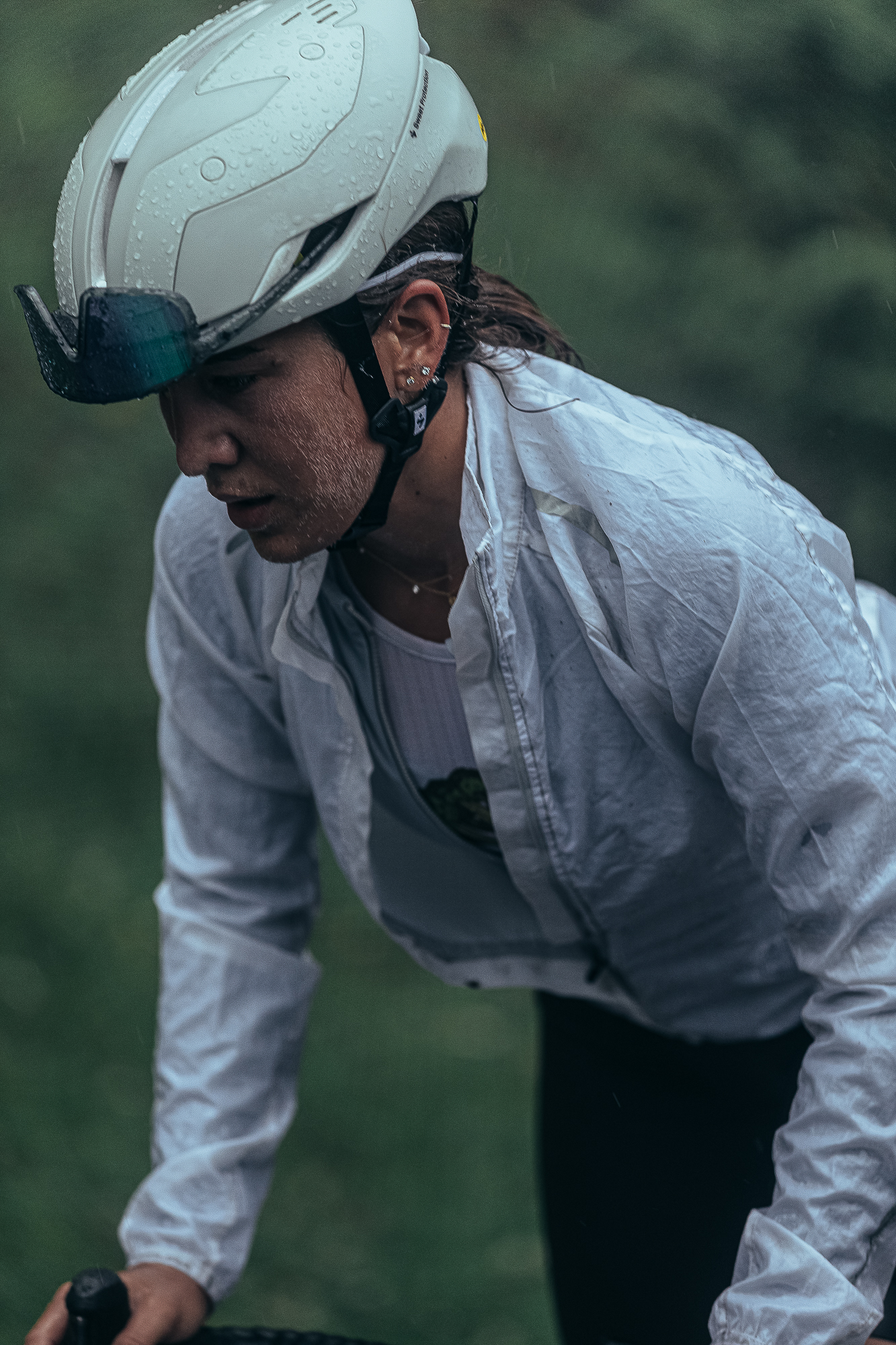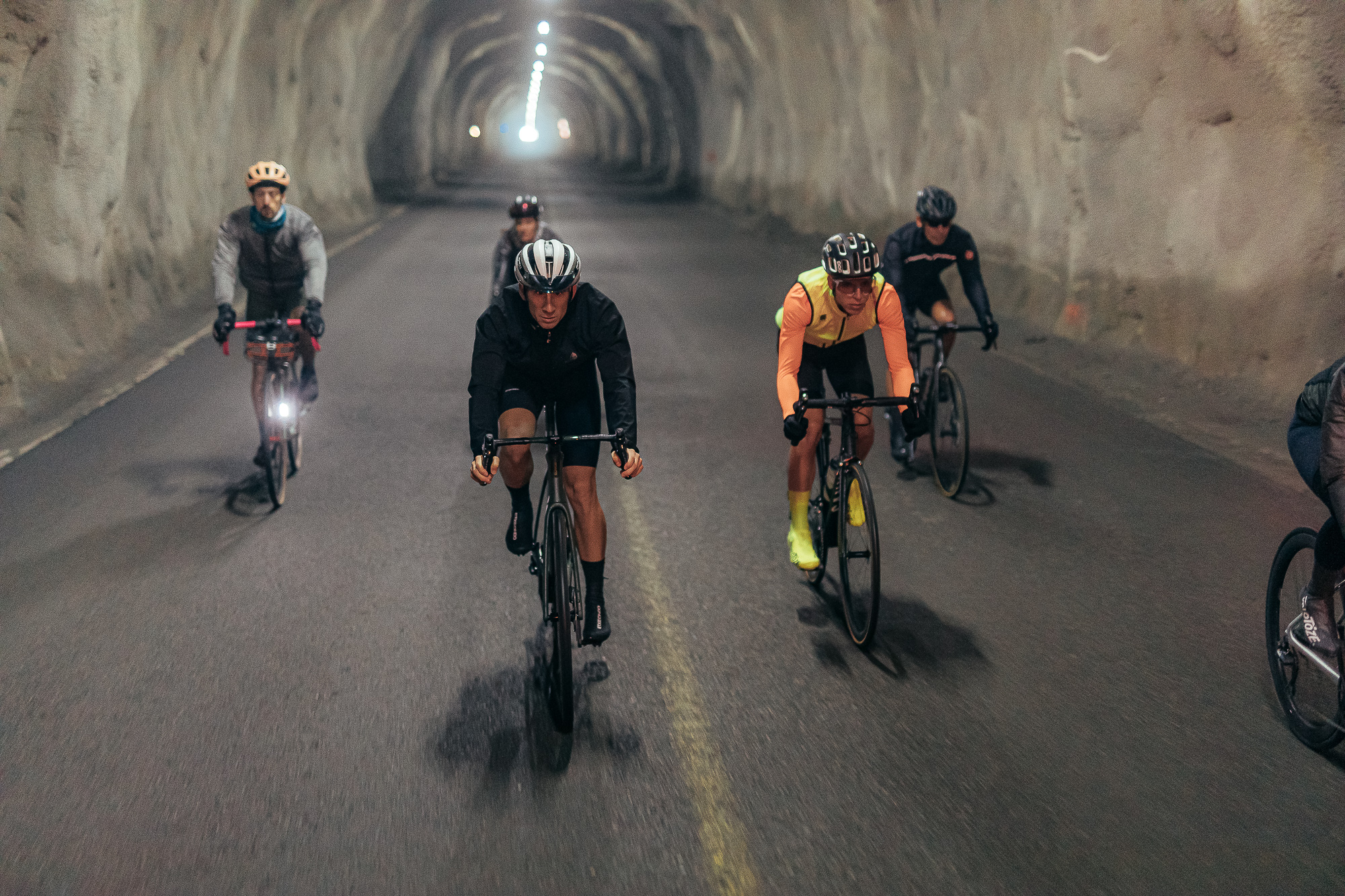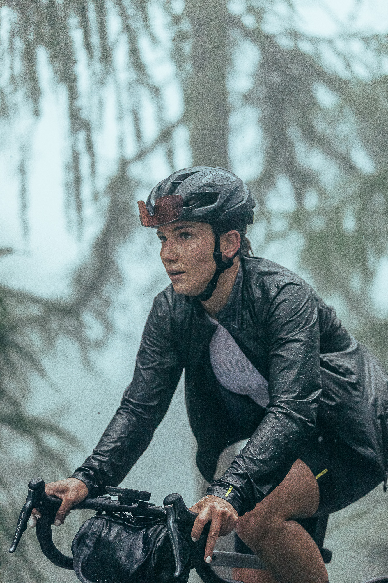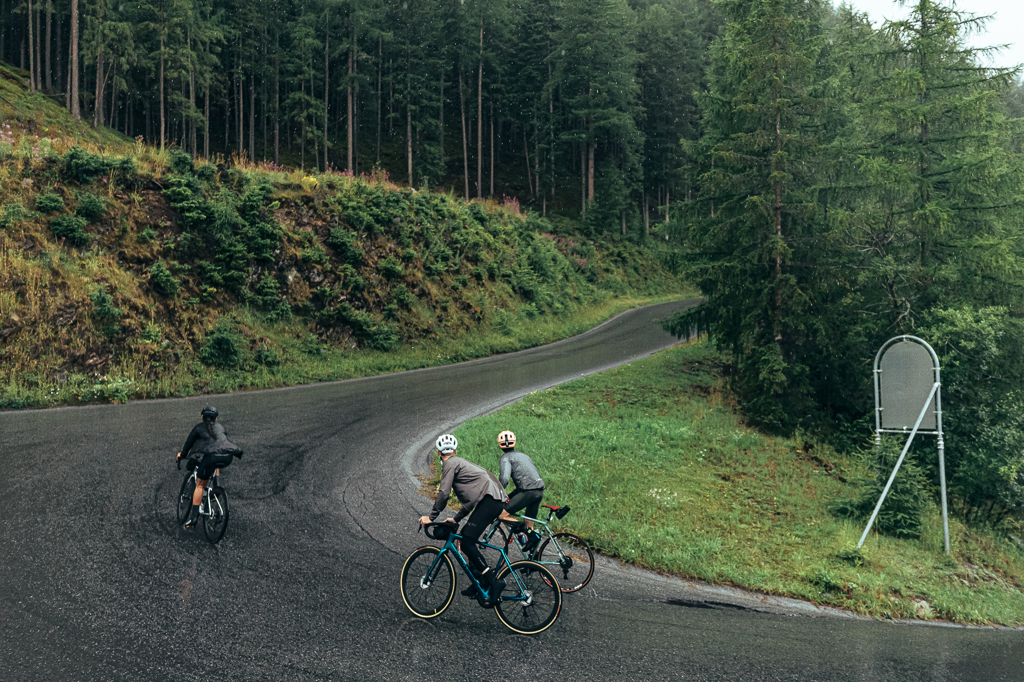 The rain didn’t stop during all the climb, and despite the fact that we could not see the landscape because of the fog, we got a glimpse of the first “giants” in between the haze. At the start, the gradient was around 13%, and only two short false flats in the entire climb allowed us to take some rest. We quickly realized which of the participants was at a similar level to us, and the pack split into smaller groups.
