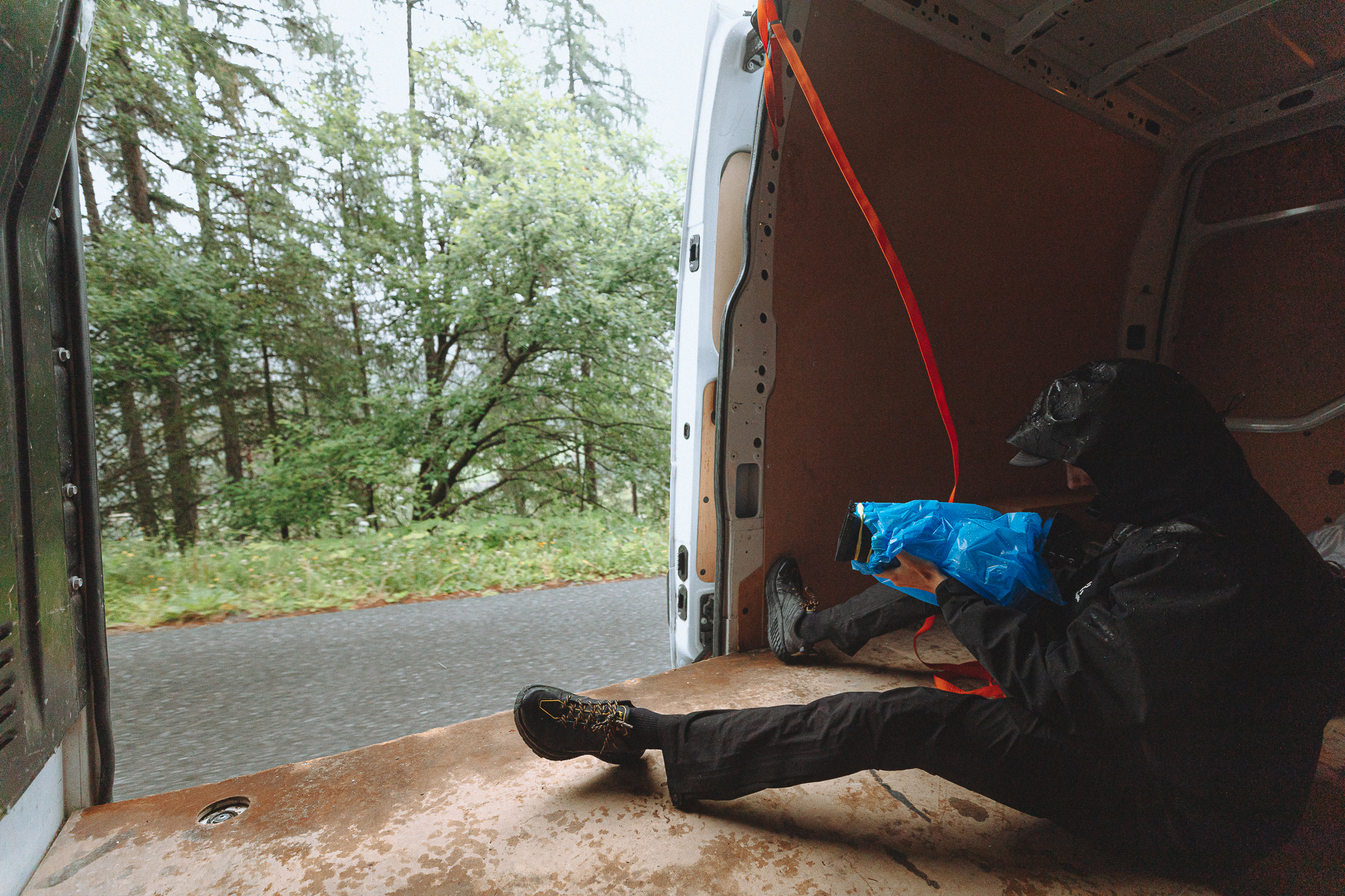 We descended through a wet road with raindrops that felt like needles and shivers all over our bodies. As we arrived back at the toll, they warned us about a broken gas pipe that had blocked the road in Sölden and would prevent us from arriving home. We hesitated, but we decided to carry on hoping to find clear roads by the time we got there.
