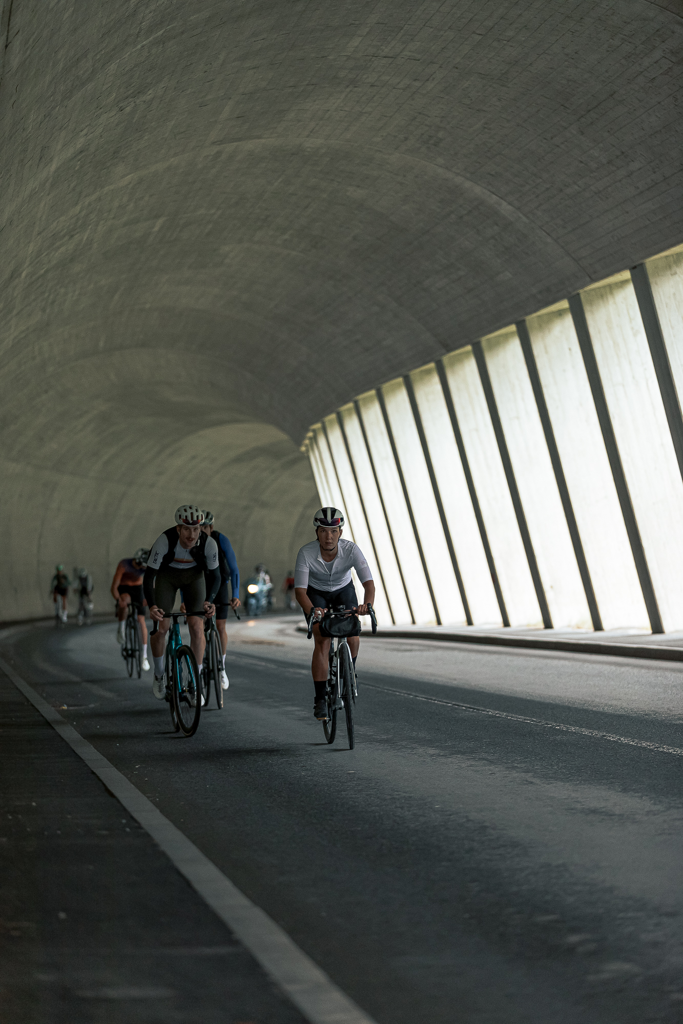 As we started riding we went into the main road, and with a relatively cold temperature, we gradually approached the start of the climb. We marked the unofficial start of the climb in Sölden, and the proper slopes started in Zwesielstein, with some steep sections that disaggregated the group into multiple parts. Given the length of the climb, it was a day to pace ourselves and manage our energies. The landscape, which featured high peaks and a little river running through the mountainside, entertained our way to the top.