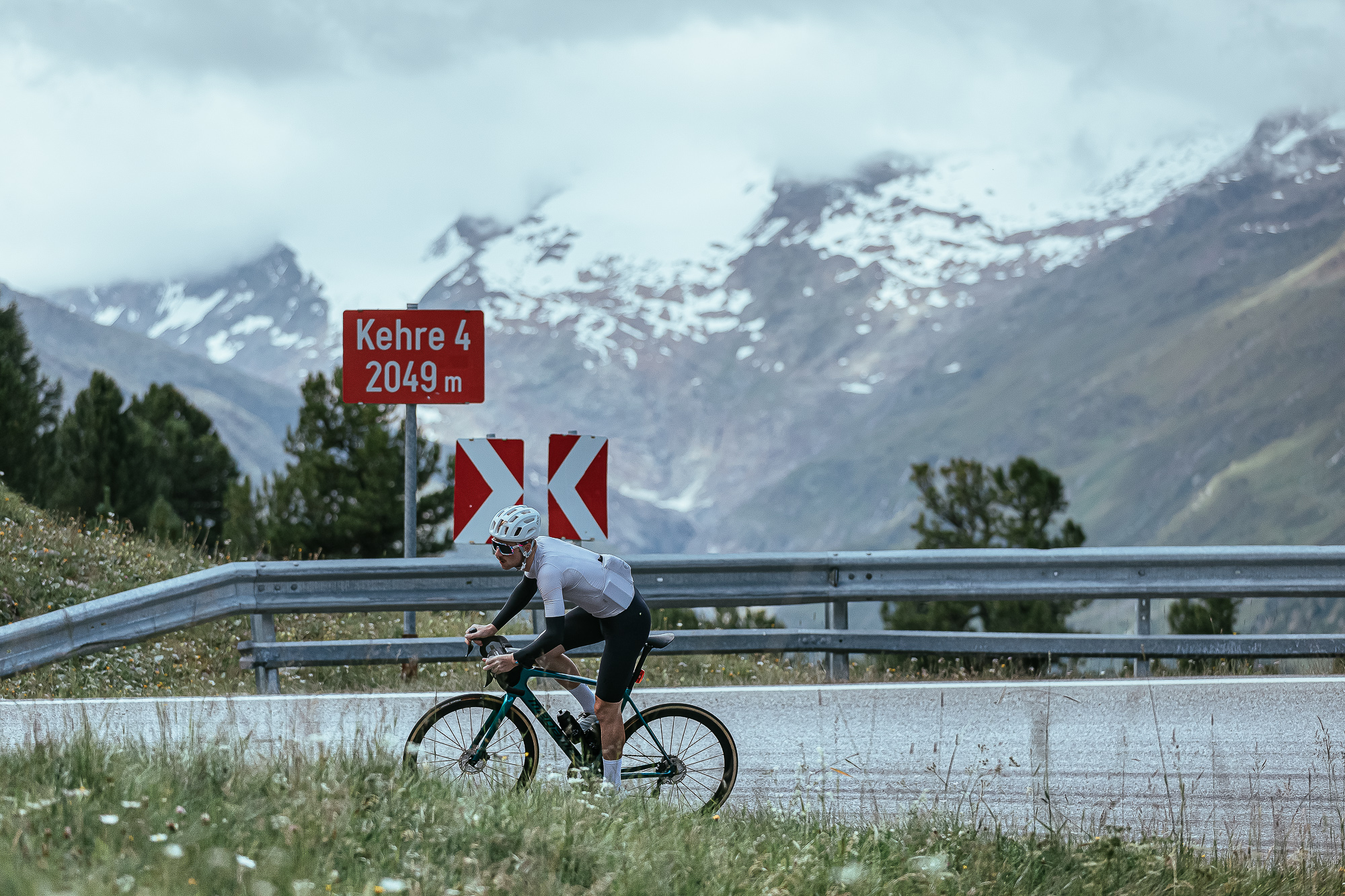 When we left the house the rain was already intense, and we headed south taking the main road that crosses the valley and leads to Italy. After around 20 km with gentle slopes, we got to Sölden, which marked the start of the highlight of the day: around 10 km with an average gradient of 11%.