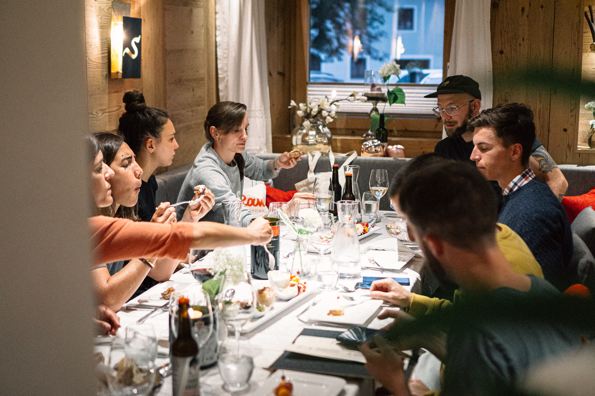 Whether by plane or car, most of the participants were already in Längenfeld by the time we decided to have dinner, not before getting our bikes ready and settling in our respective rooms, waiting for the first formal meeting. We had already chatted throughout the day, but once dinner was finished we started with the official briefing of the event, introducing what we would encounter in the following days and presenting ourselves to the rest of the people gathered in the dining room.