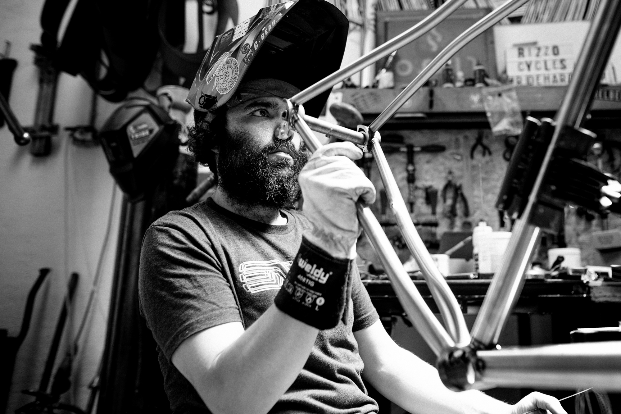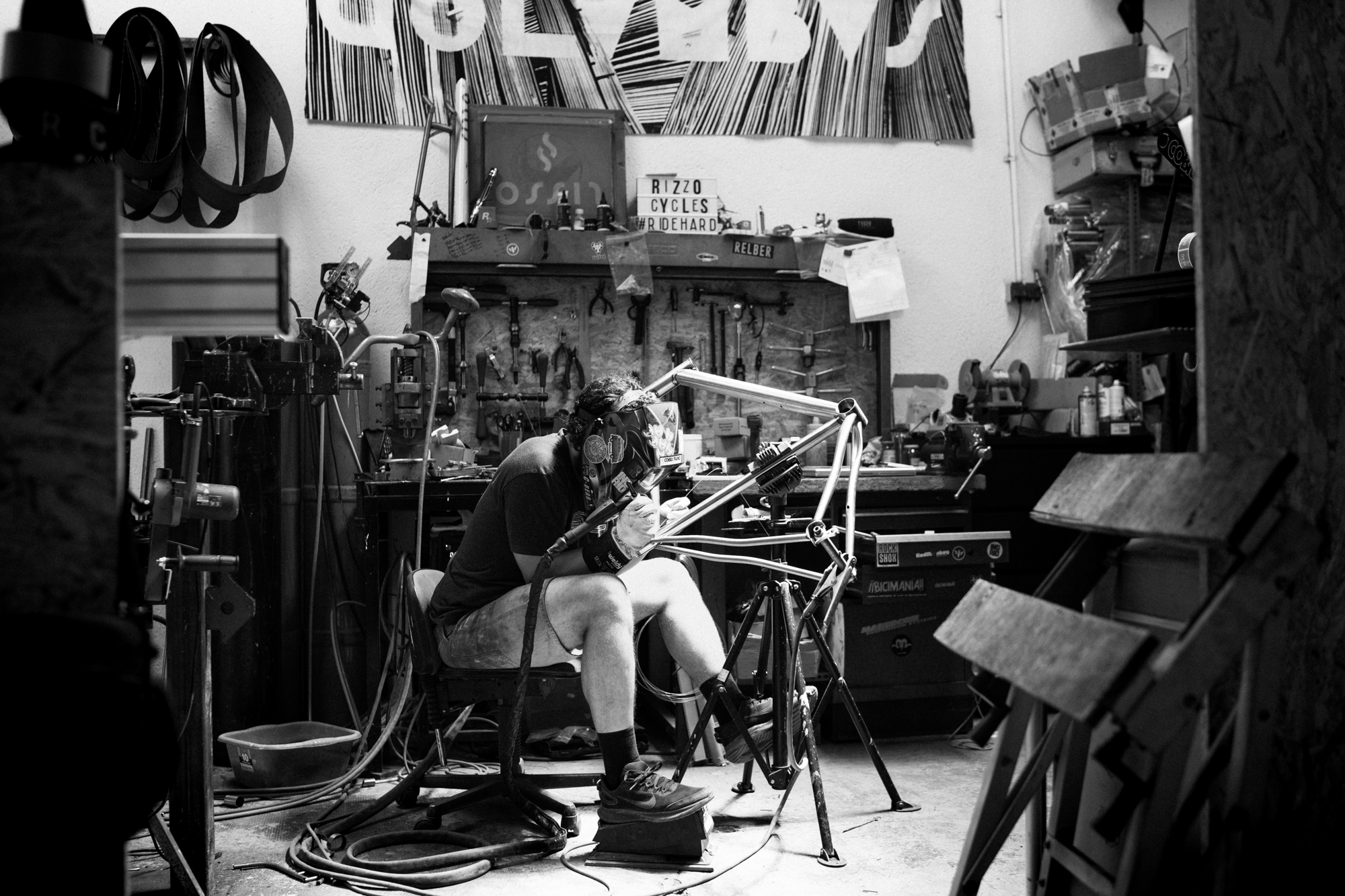 During some time we came across him, back then still working as a sound engineer, in all types of fixed gear events, like criteriums and alleycats. It was the moment when hand-built steel frames were beginning to be seen in races like the Red Hook Criterium, and it was at that time that Rizzo’s interest in that world began to develop inside him.