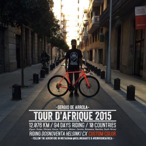 On this occasion I will ride with an orange fluorine spaceship that my Dosnoventa friends have given me. It’s a CX Helsinki model with disc brakes and everything assembled with Shimano and Deda. It’s a fucking wonder. It’s a very solid bike and I am delighted how it responds in all situations. In the city is very fast and as soon as you leave the asphalt it responds like an off-road bicycle. I am looking forward to test it by the mud of Kenya or the desert of Egypt.