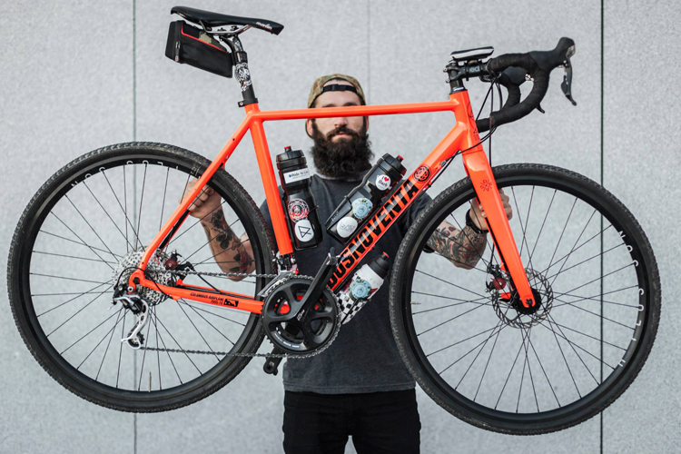 On this occasion I will ride with an orange fluorine spaceship that my Dosnoventa friends have given me. It’s a CX Helsinki model with disc brakes and everything assembled with Shimano and Deda. It’s a fucking wonder. It’s a very solid bike and I am delighted how it responds in all situations. In the city is very fast and as soon as you leave the asphalt it responds like an off-road bicycle. I am looking forward to test it by the mud of Kenya or the desert of Egypt.