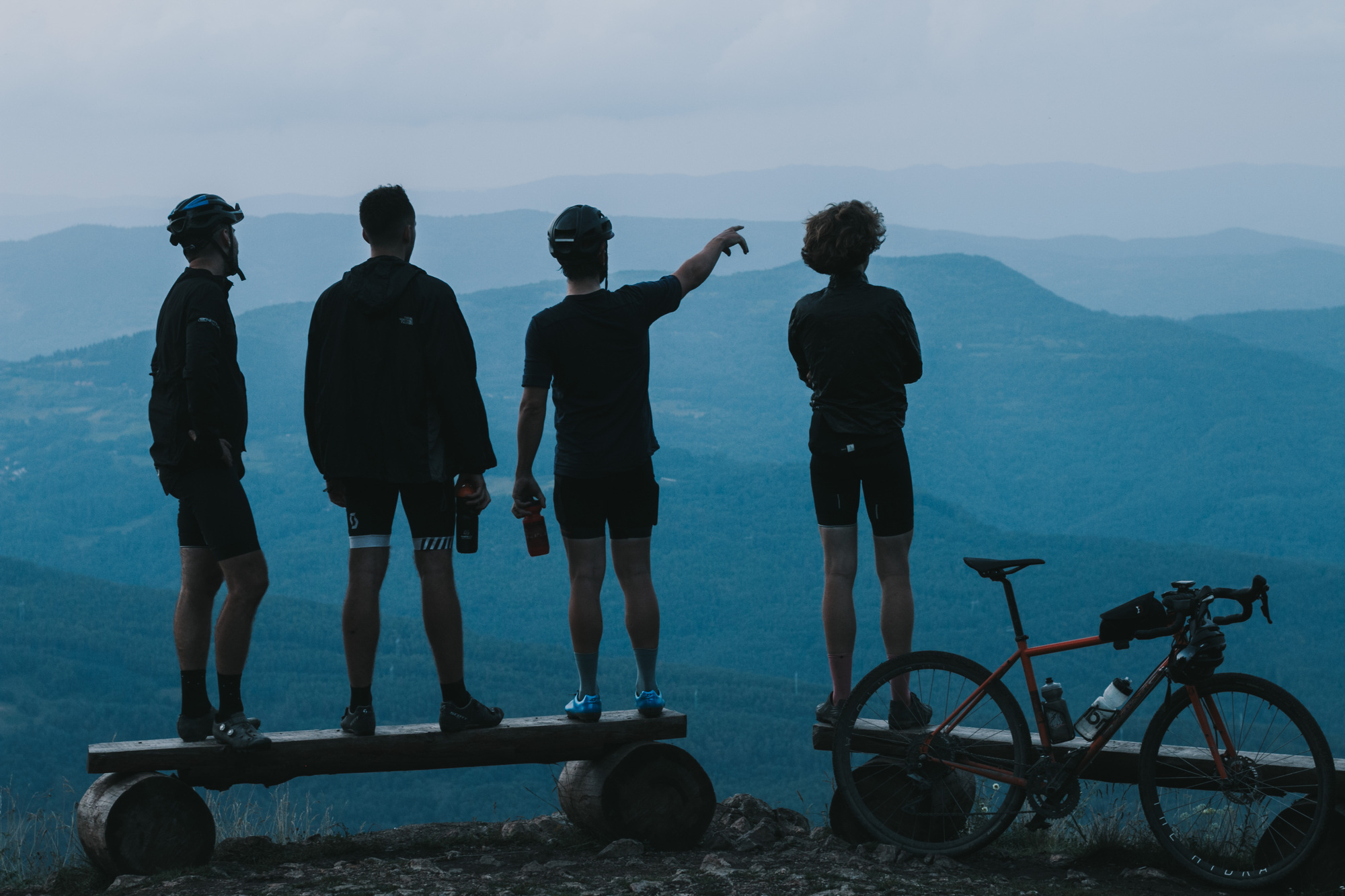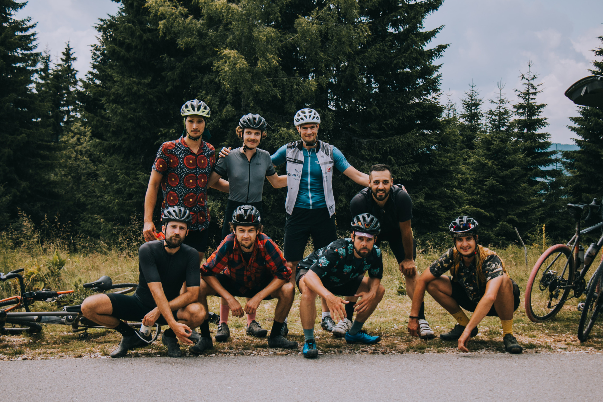 On the 20th of July, the eight adventurers started the trip from Valjevo, all wondering if 40 mm wide tires would be enough or if the 11/42 gearing was sufficient. The day was cold, foggy, and rainy, but the hopes were high. After the morning ritual, they departed for 10 hours on a bike riding on unknown paths, unstable weather, and untested tracks. The rainy morning left a scenic surrounding, with dark grey, green, and intense blue colors. After a 15 km long ascent, they reached the Podrinje gate viewpoint, a moment of satisfaction, and a turning point for the German riders as they realized that the trip was something special and authentic.