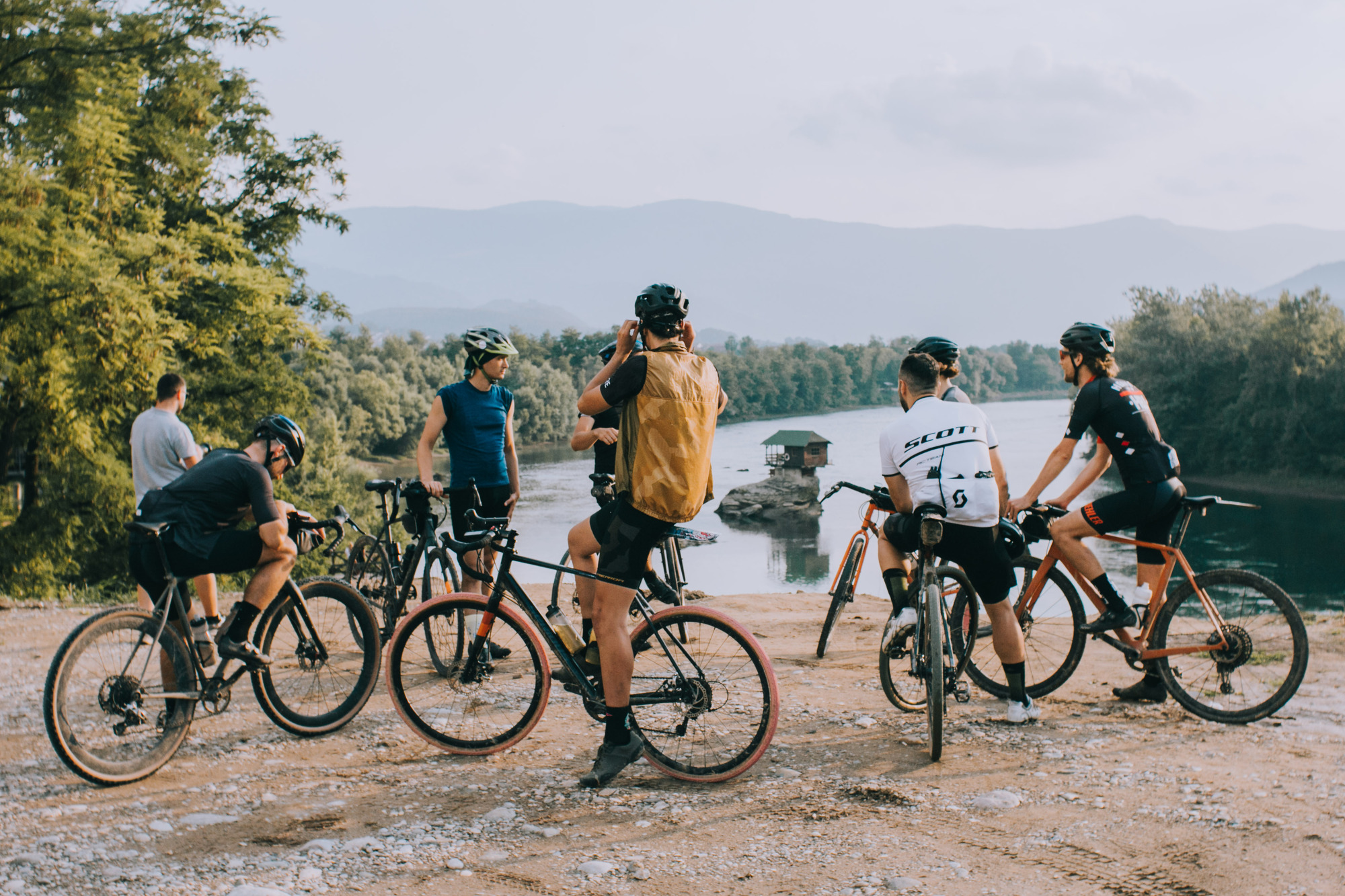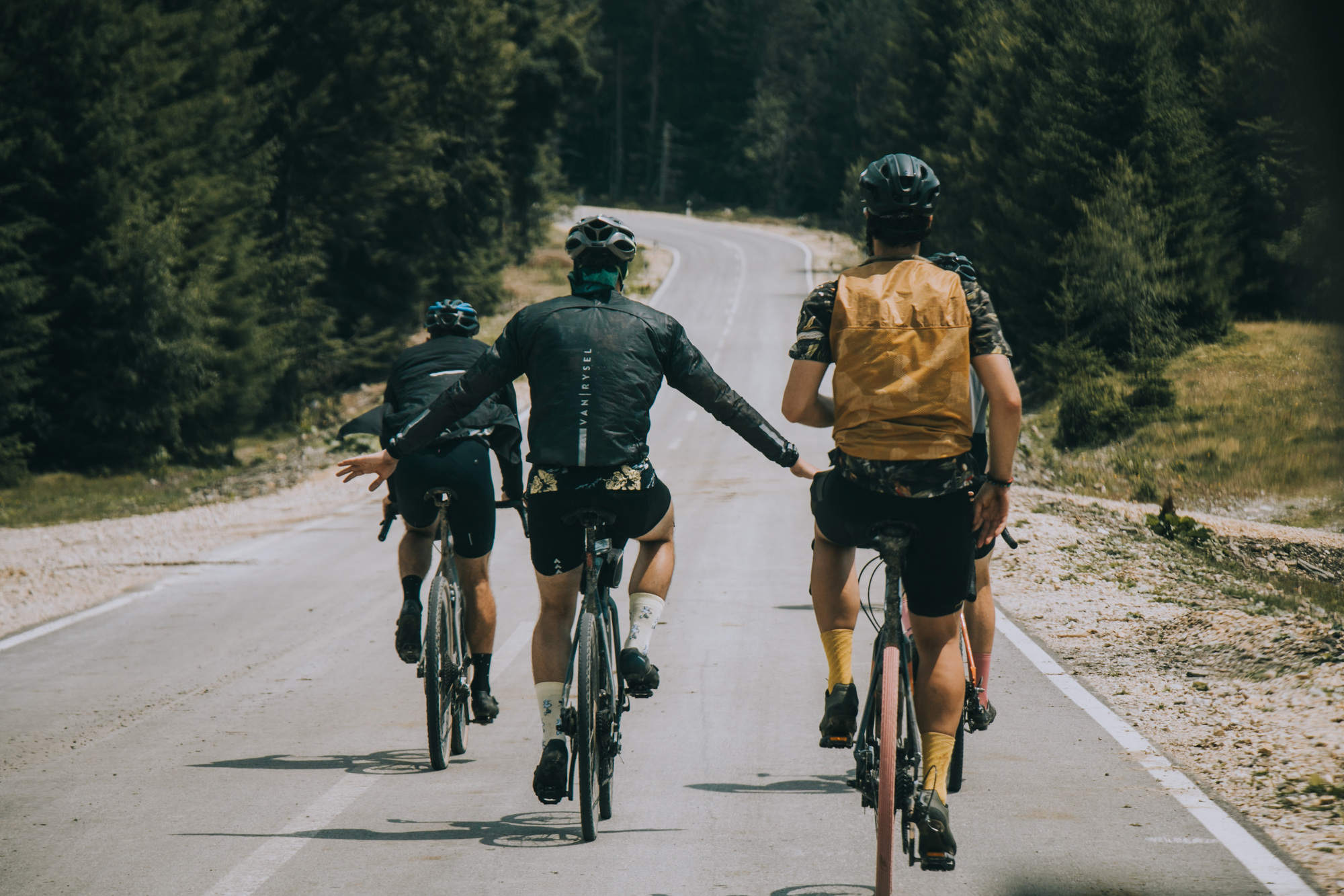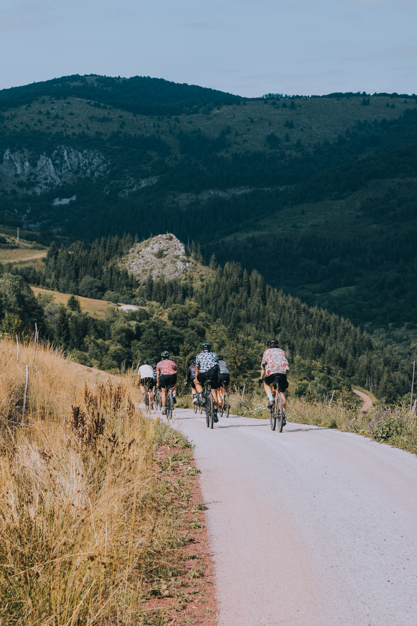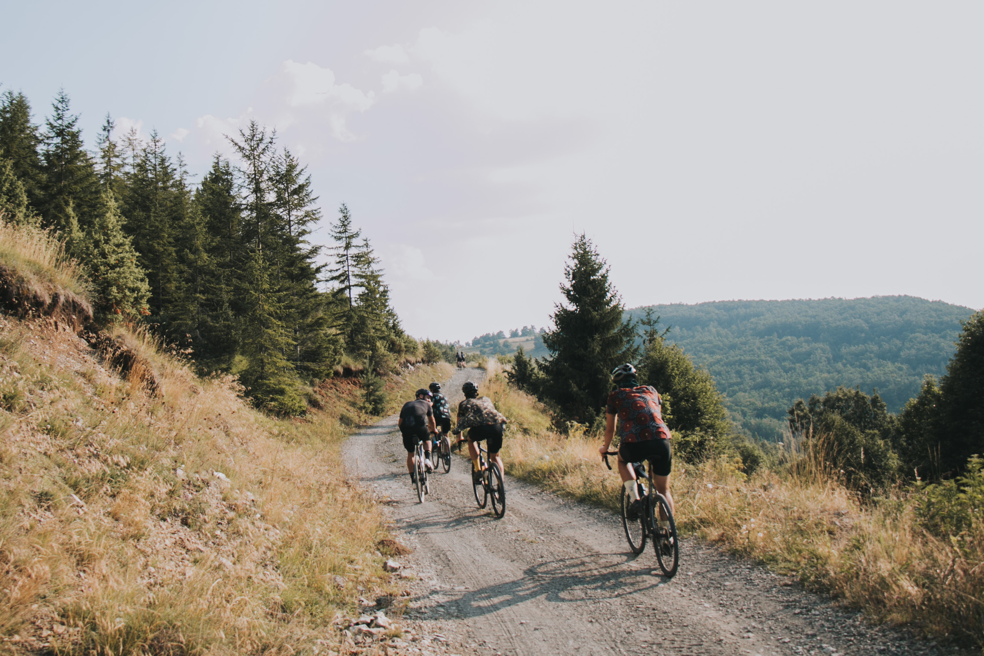 The whole trip was a real immersion into Serbia. The designed track resulted in unexpected gems. They would average 100 km and 2.200 m per day but the accumulated fatigue did not bother the group. They conquered the Tara mountain, rode side-by-side the Zaovine lake, passed through gravel paths that turned into MTB trails, and isolated themselves between hills and forests. An undescriptive moment was when they rode through the Zlatibor mountain, as they crossed a golden landscape of long dry grass hills, feeling as they were in the Argentinian pampa or Kansas. Some eventual tarmac allowed them to spin their legs, but not for long, as they had to cross some streams before arriving at Zlastarsko lake where, bibs down, they soaked for a while. A complete feeling of freedom surrounded the atmosphere, with no schedule, organized stops, or average speed.