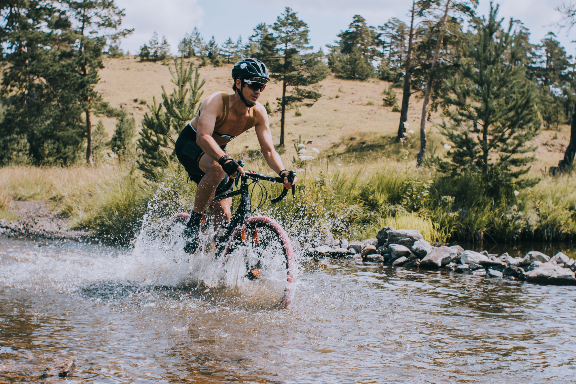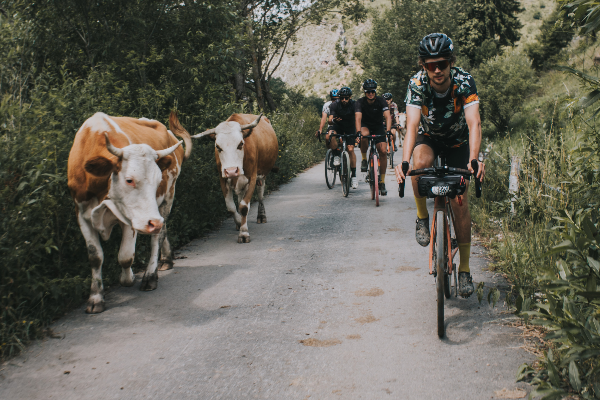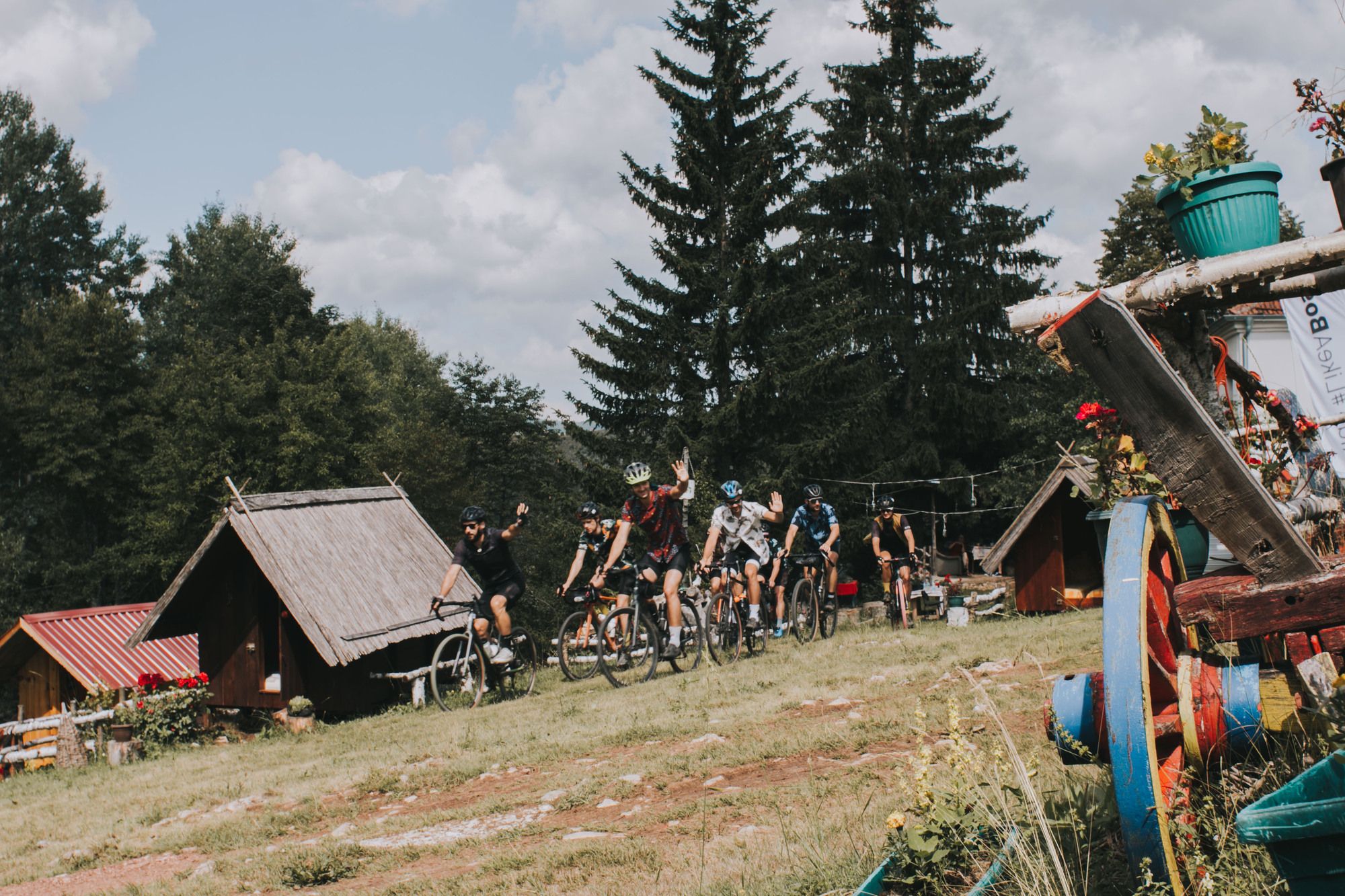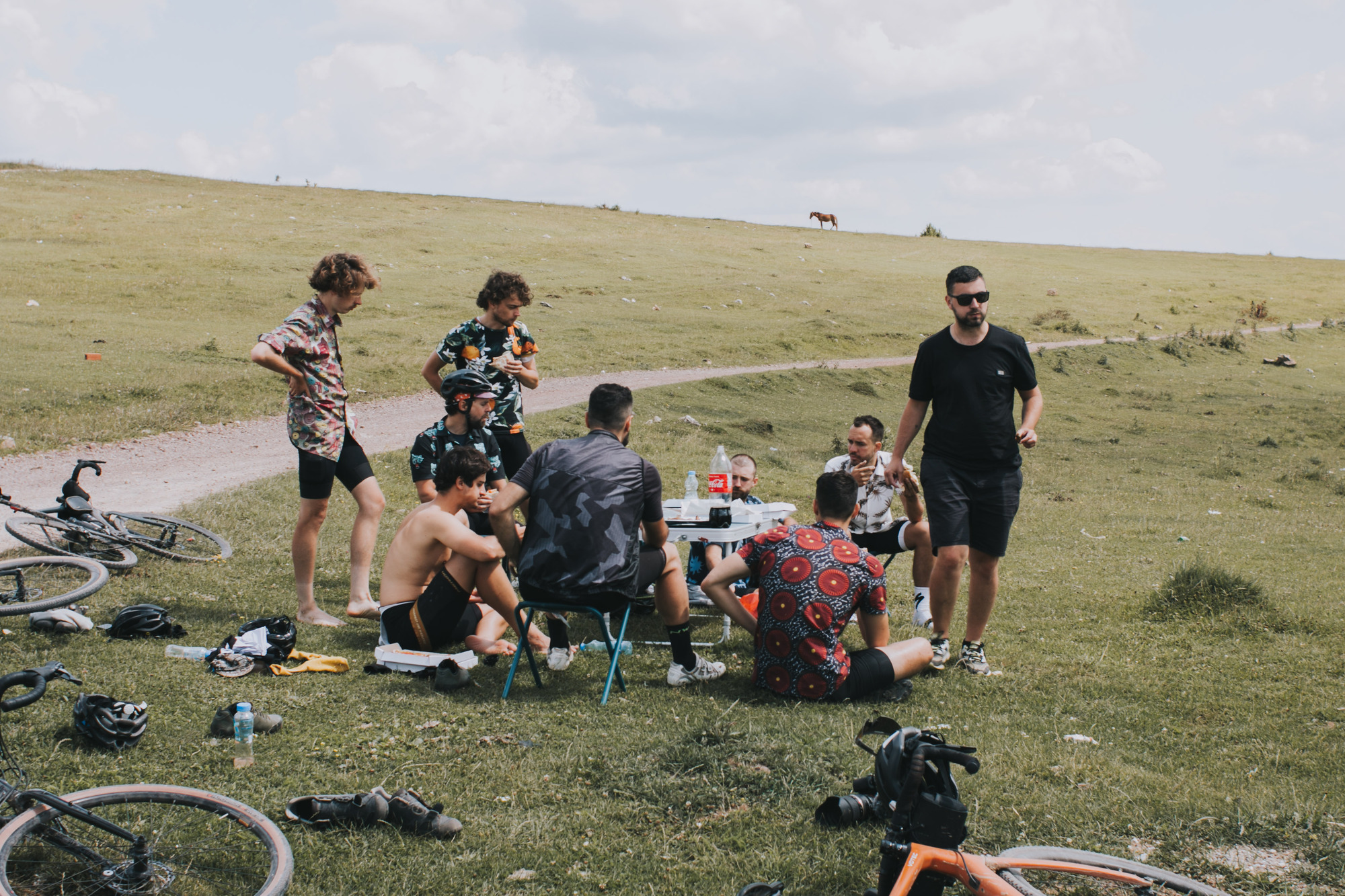 The whole trip was a real immersion into Serbia. The designed track resulted in unexpected gems. They would average 100 km and 2.200 m per day but the accumulated fatigue did not bother the group. They conquered the Tara mountain, rode side-by-side the Zaovine lake, passed through gravel paths that turned into MTB trails, and isolated themselves between hills and forests. An undescriptive moment was when they rode through the Zlatibor mountain, as they crossed a golden landscape of long dry grass hills, feeling as they were in the Argentinian pampa or Kansas. Some eventual tarmac allowed them to spin their legs, but not for long, as they had to cross some streams before arriving at Zlastarsko lake where, bibs down, they soaked for a while. A complete feeling of freedom surrounded the atmosphere, with no schedule, organized stops, or average speed.