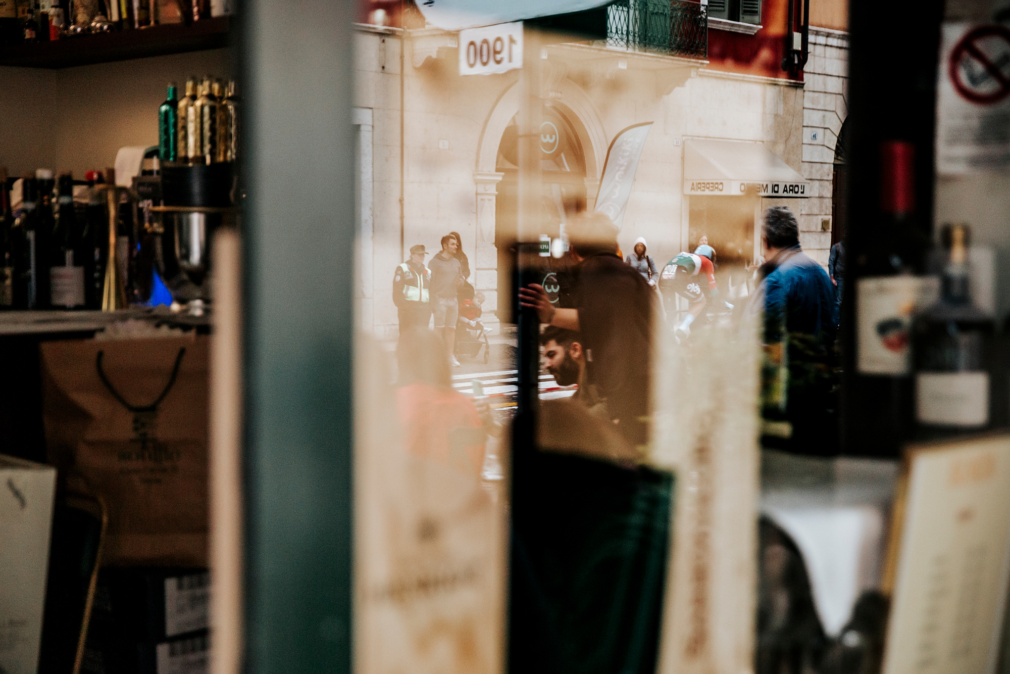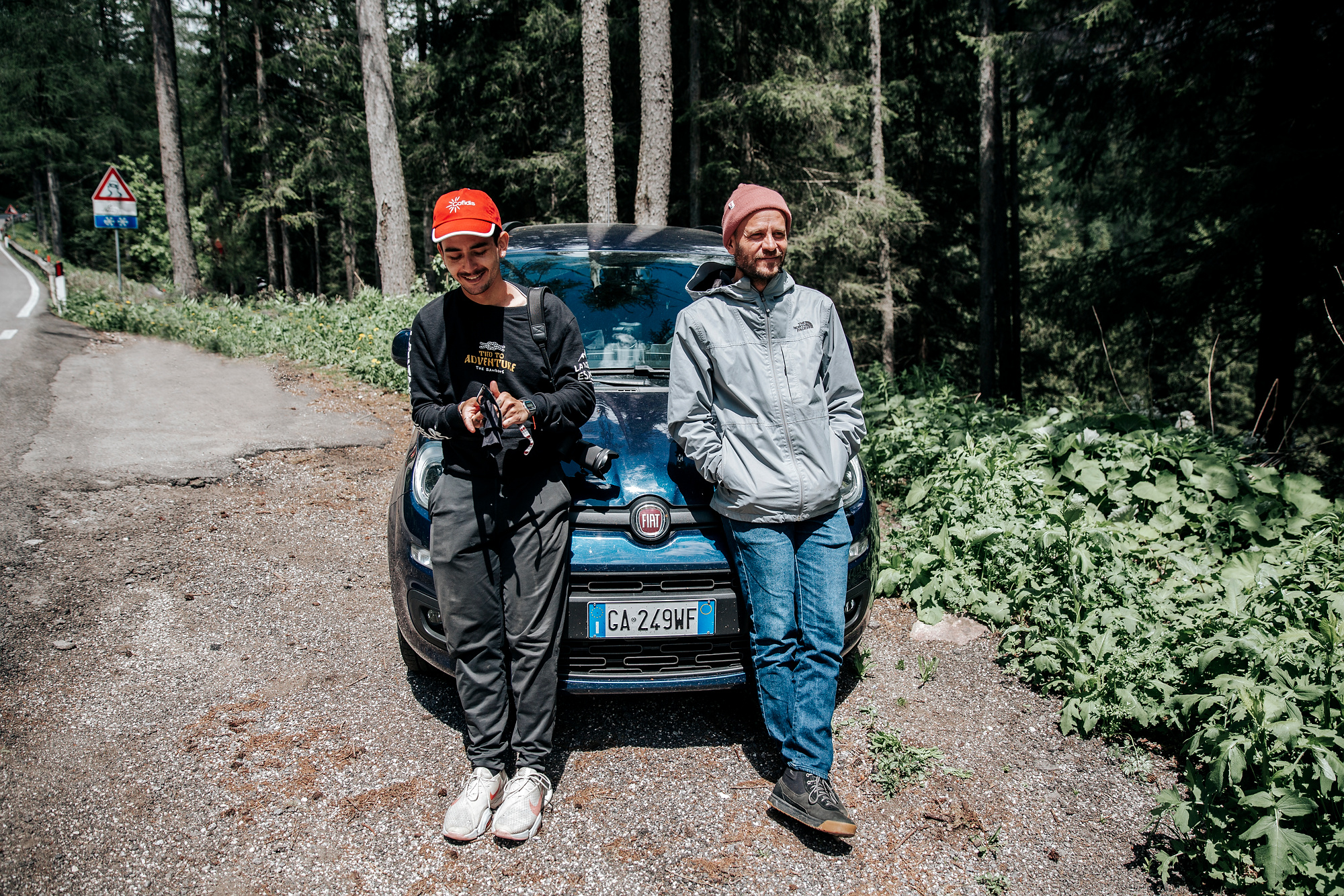 The fact of not being recognized as official press could have been a problem, since you can’t access places like the finish line. However, that made them think further to look for those spots out of the ordinary. They traveled by car from point to point, always trying to cover two points of the race, with a mountain pass and the finish line as an example. Once parked, with their cameras on their shoulders, pockets full of food, and bottles of water, they started walking to find the best angle and light. This allowed them to mingle with the Italian fans who, realizing they were Colombian, opened the doors of their homes to them, starting conversations and inviting them to eat.