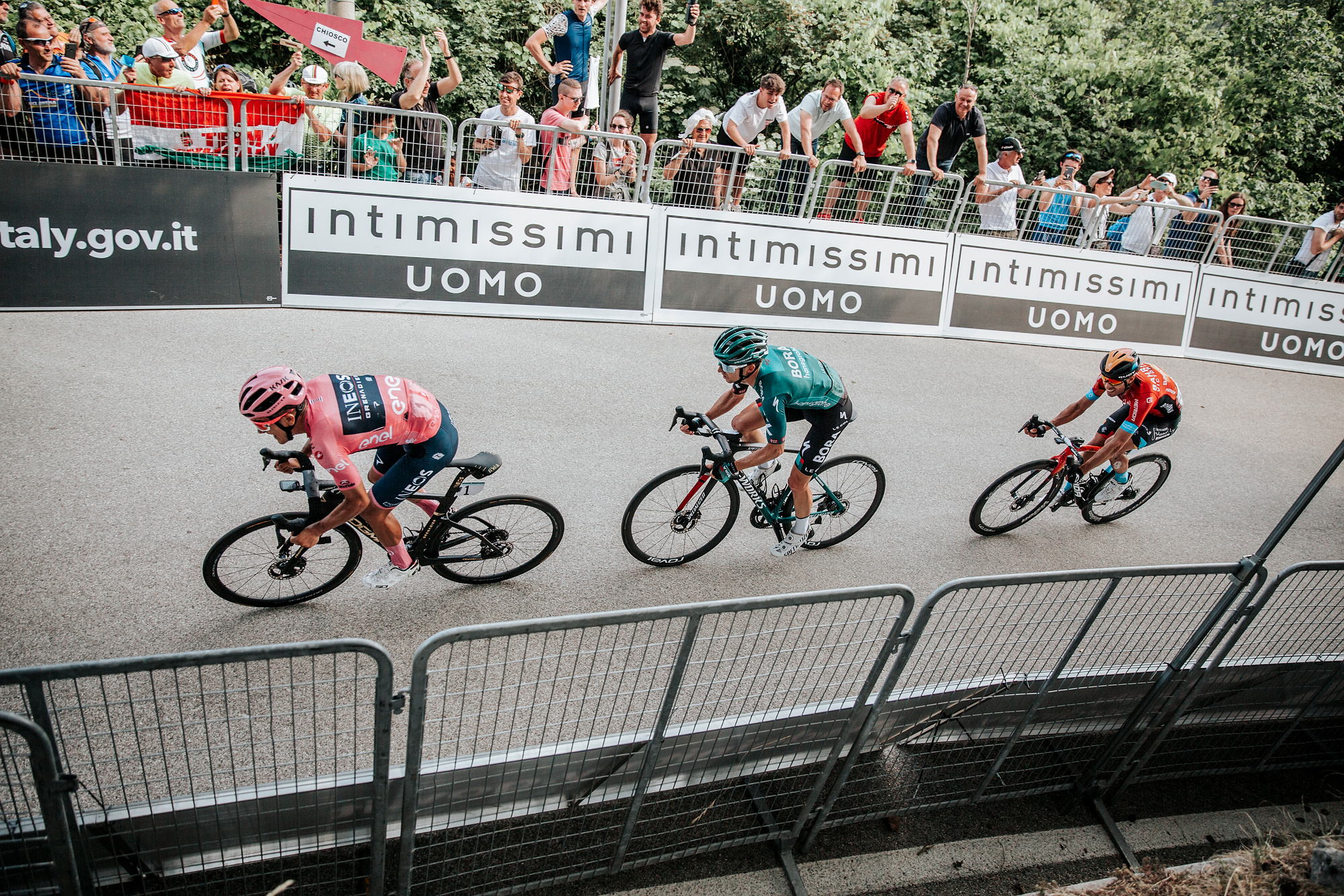 The three professional photographers Cristian, Mateo, and Rubio started their project La Vuelta es Así in 2021 with the idea of ​​capturing the purest essence of women’s and men’s cycling in Colombia. This time they got out of their comfort zone moving to Italy, where the first of the three Grand Tours would take place, in order to attend an event of this magnitude in first person from the point of view of a fan and photographer.