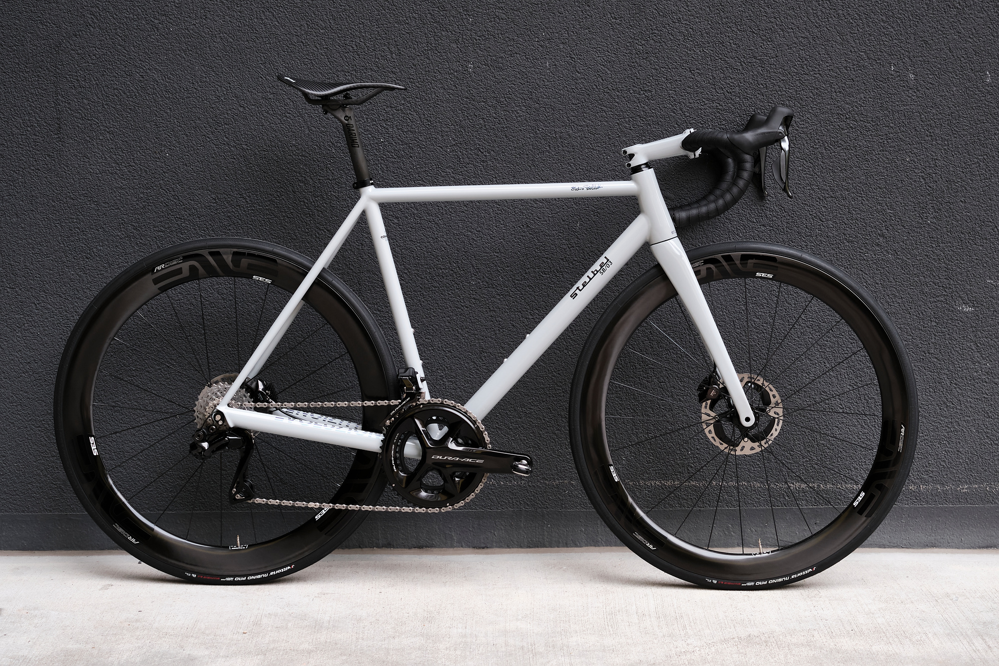 Stelbel is an Italian brand that has maintained the essence of its founder Stelio Belletti in producing custom steel frames but always looking forward to the future. A clear example is the presence of lightweight carbon wheels and cockpits, electronic shifters, or discs brakes in their builts, which result in outstanding racing bicycles.