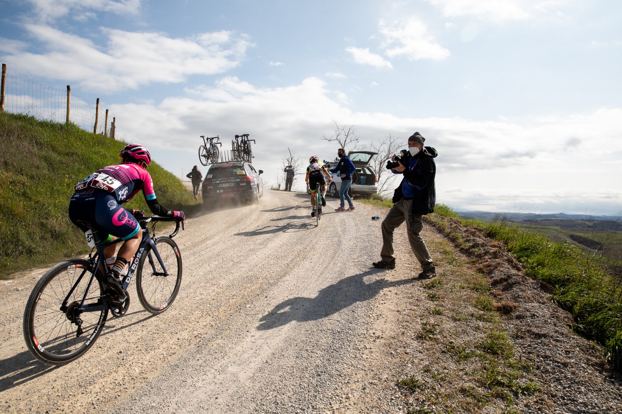 The day before, Peloton Brief joined BORA-hansgrohe for their recon ride, which gave her a fresh idea about some potential locations, although, in a race like Strade Bianche, every kilometer of the course can be the source of high-quality content.