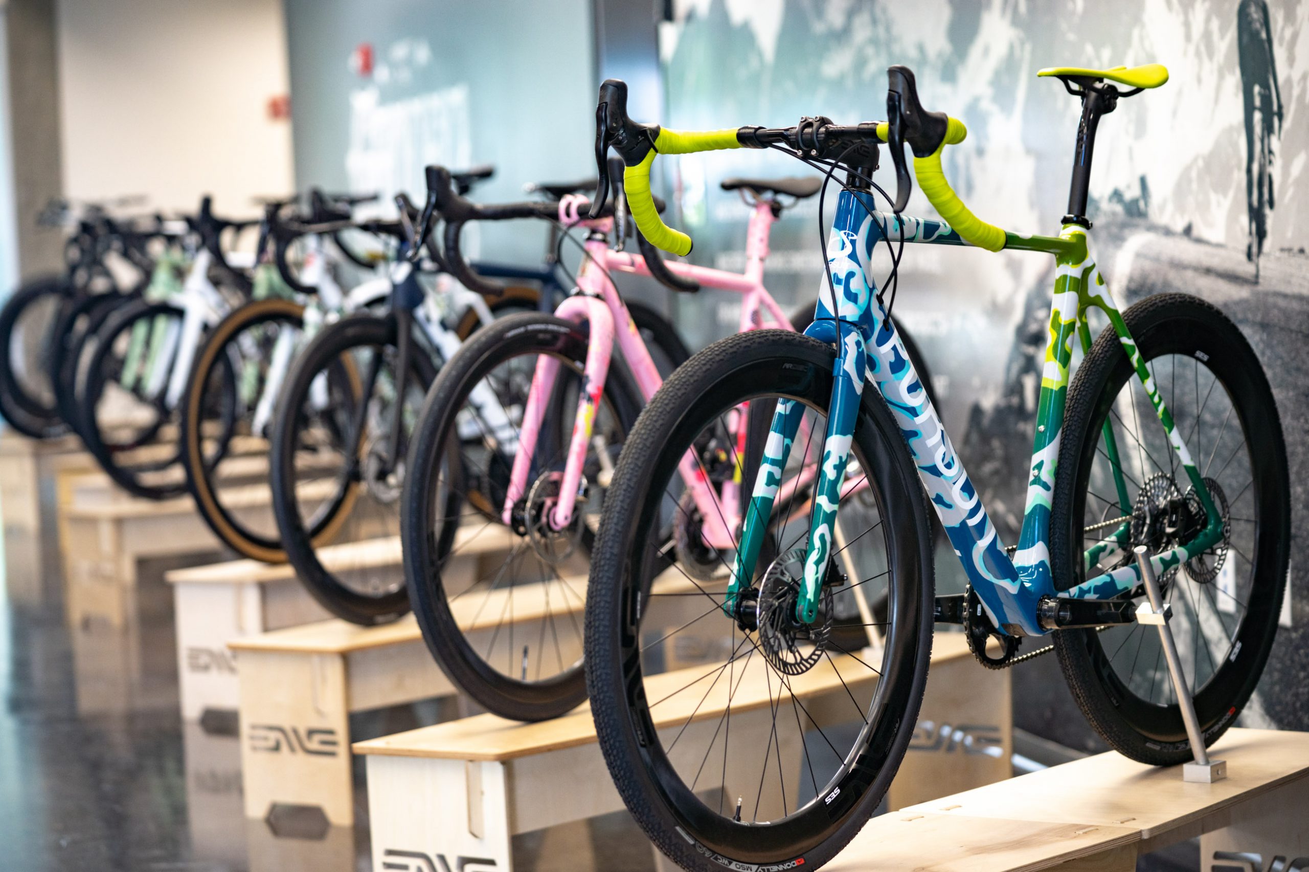 A total of 35 bicycles totally designed and made by invited artisans were displayed in ENVE’s Open House on Friday, as in a mini NAHBS convention. The event allowed exhibiting their latest creations, whether these were road, gravel, or mountain bikes made out of steel, aluminum, titanium, or carbon.