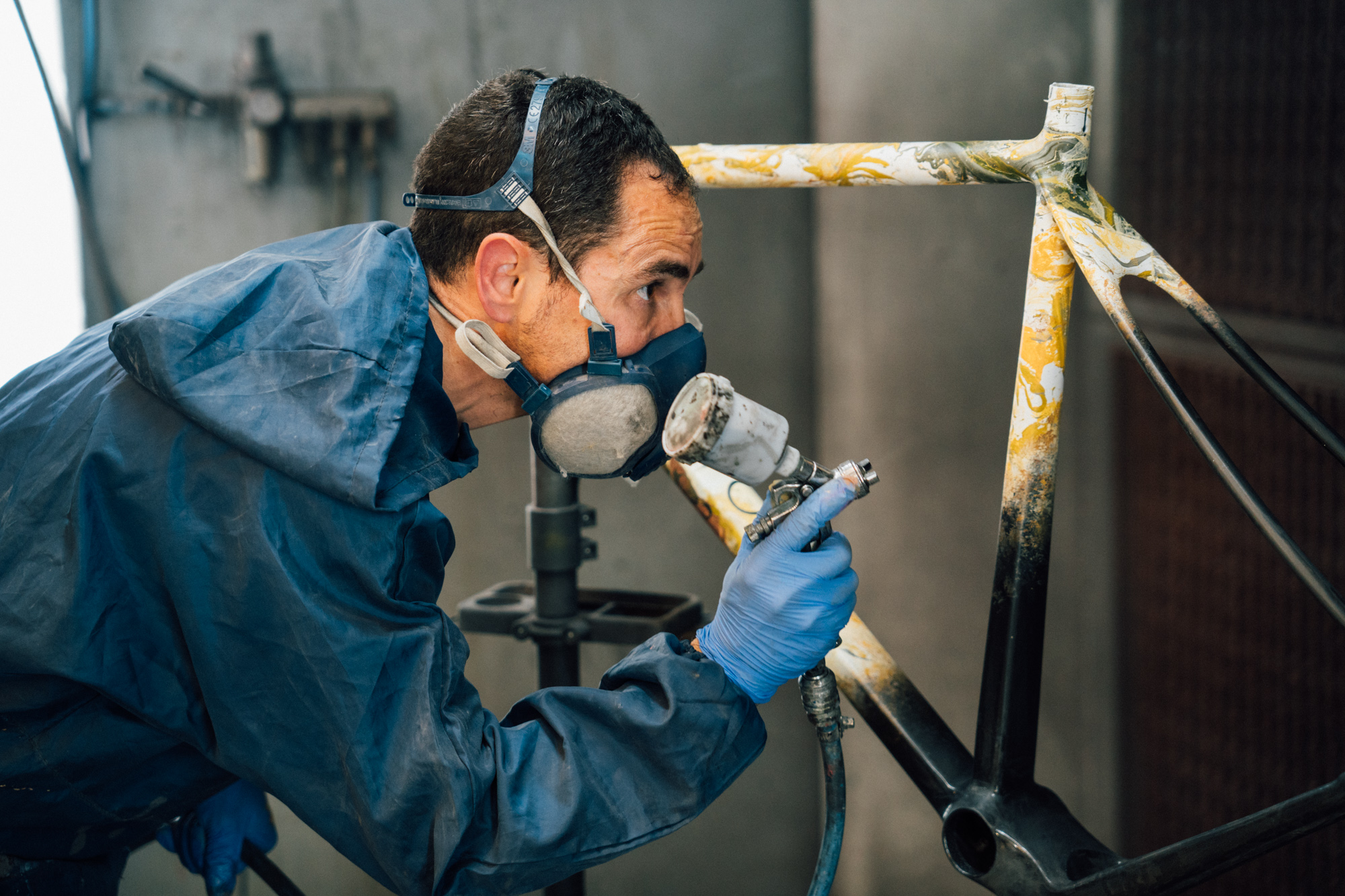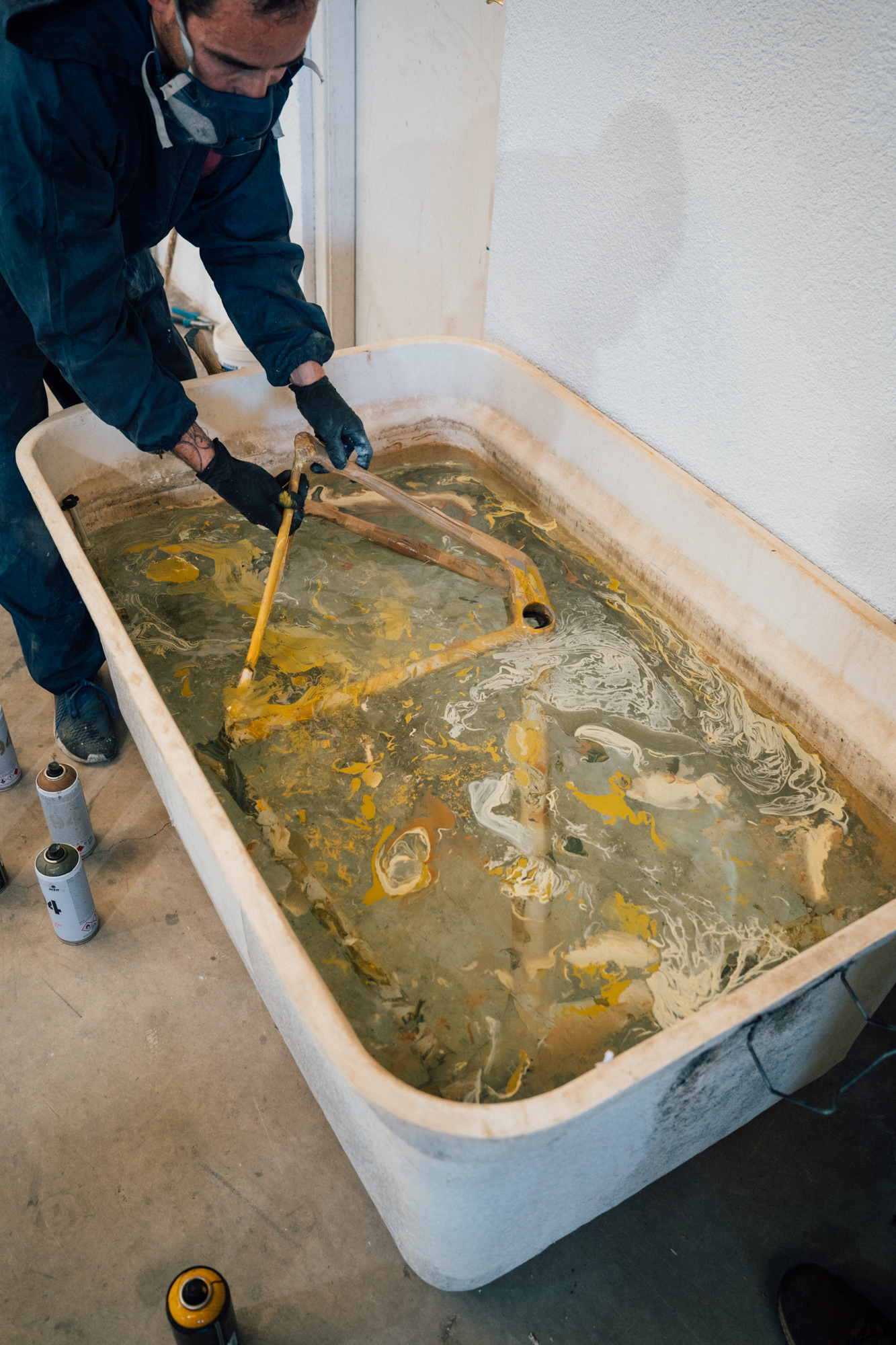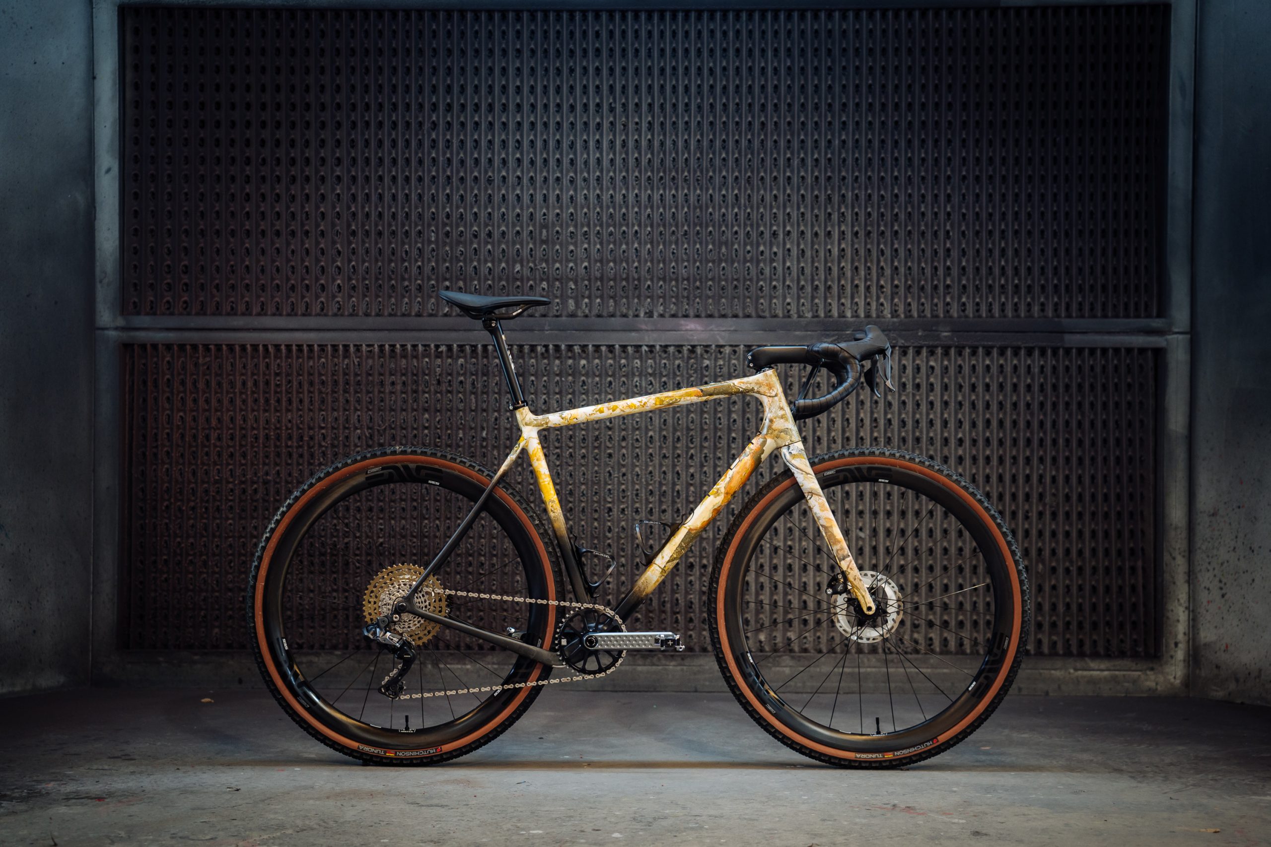 The frame, together with the top of the class components that complemented it, were custom painted by S-Colors. Diederik wanted to mimic the characteristic colours of everything gravel related on his bike, and the end result based hydro-dipping clearly stands out from the average paint job.